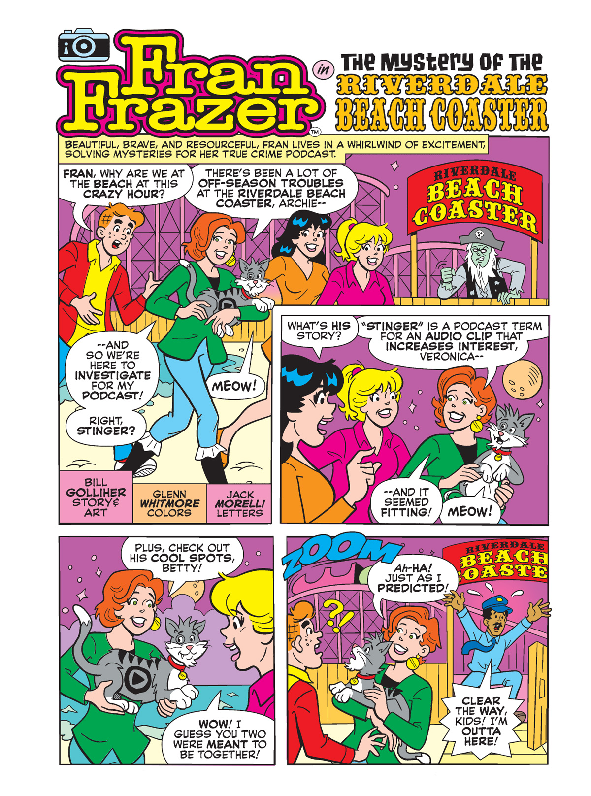 We’ve thrilled to some of Fran’s new adventures as a true crime podcaster in recent Archie digests, and this week’s caper is no exception as she and the gang head to the beach to save the day at an old theme park. The best part is, she’s bringing along Stinger the Cat in his very first appearance! (Purrst appearance? Is that anything?) It all goes down in “The Mystery of the Riverdale Beach Coaster” by Bill Golliher!