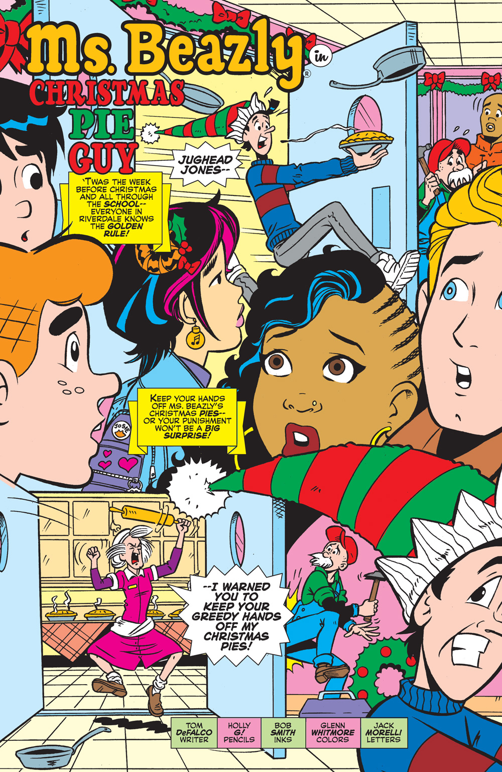 Ms. Beazly has HAD it with Jughead stealing her Christmas pies . . . so this means Christmas war! All the holiday mayhem is baked into a new story by Tom DeFalco and Holly G. in today’s ARCHIE CHRISTMAS SPECTACULAR.