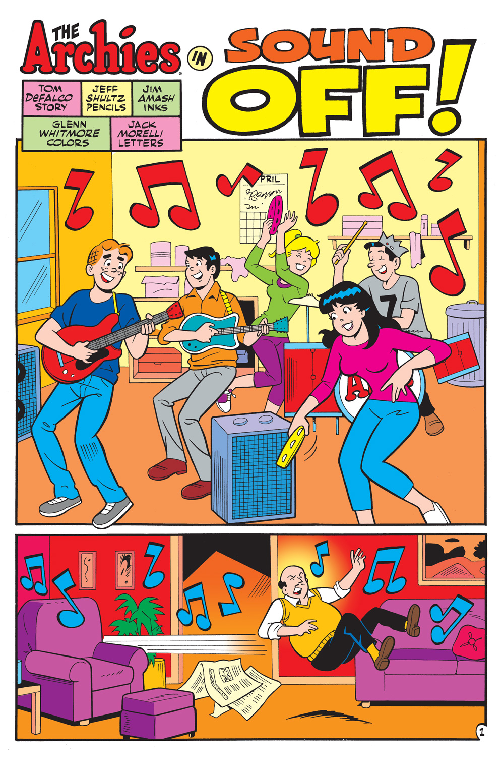 We’re celebrating THE ARCHIES 55th anniversary with this special issue honoring their musical mayhem—featuring a BRAND NEW STORY! In “Sound Off!” The Archies are looking for a place to practice after their loud music forced Mr. Andrews to kick them out of his garage. Where will they go next to rehearse? PLUS: a sampling of some of the best classic and modern classic stories featuring the musical supergroup!