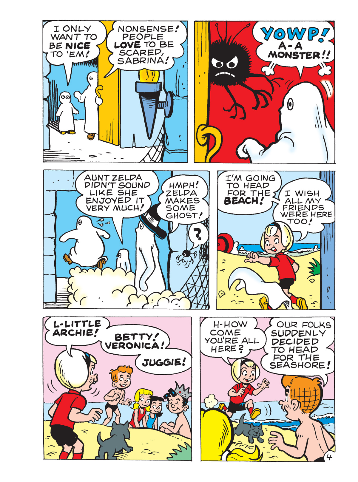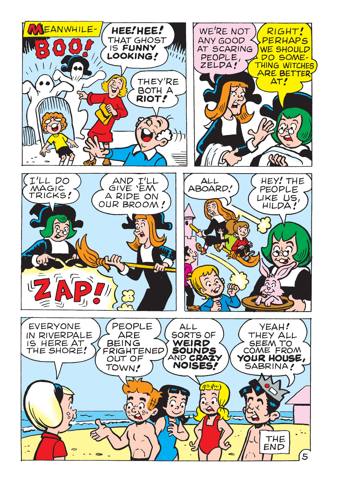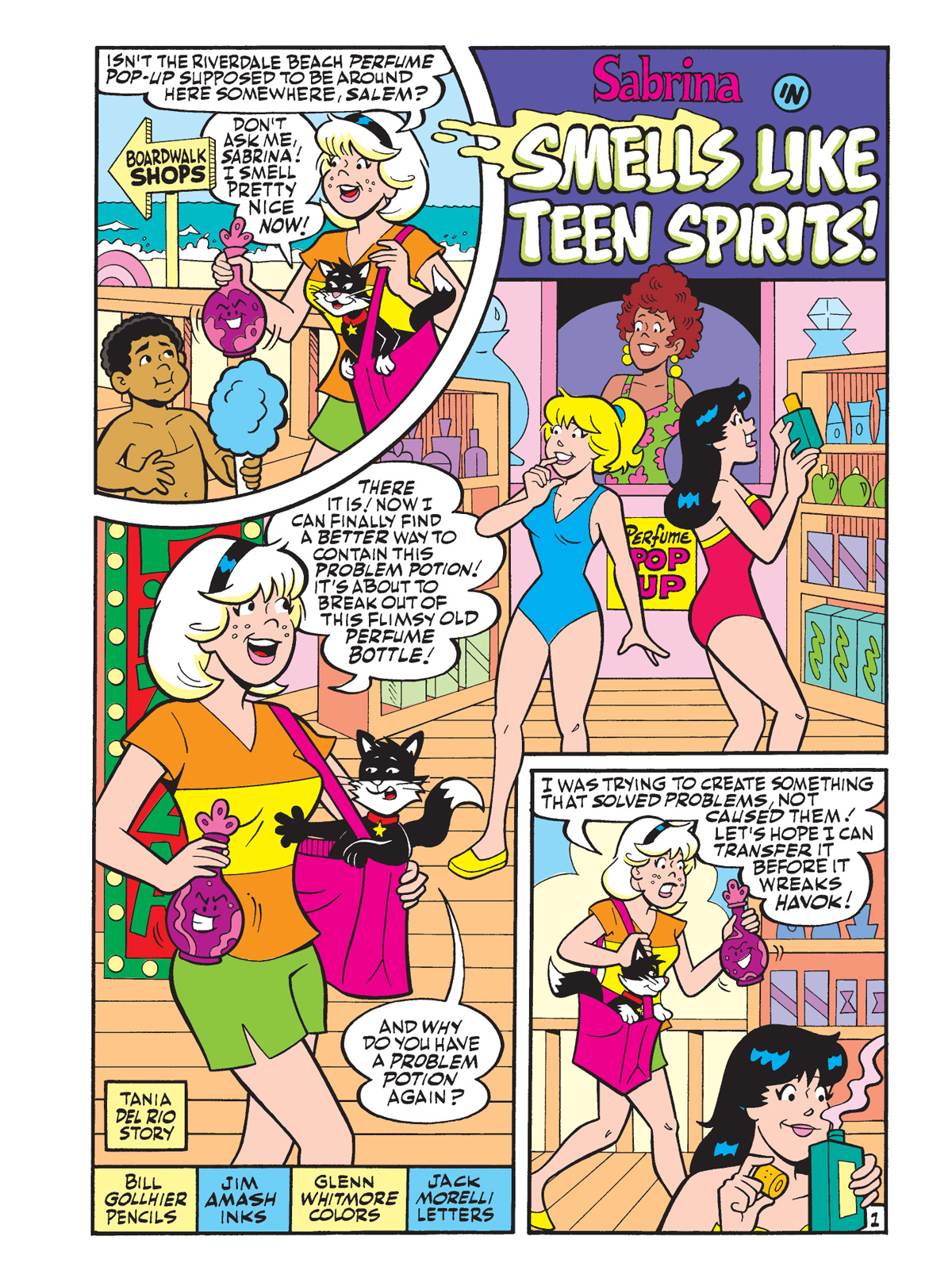 BRAND NEW STORY: “Smells Like Teen Spirits” A new beach pop-up shop has opened in Riverdale where you can mix your own fragrances and Betty and Veronica are excited to make a summer scent! However, when the two accidentally walk out with not a scent, but instead a potion concocted by Sabrina the Teenage Witch, all sorts of unexpected and unfortunate things start happening when they wear it—including repelling all the boys they approach! Sabrina has to find a way to undo the damage without Betty and Veronica noticing!