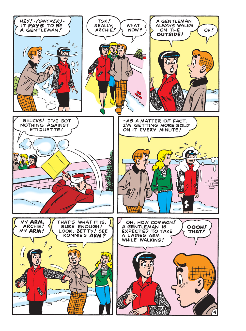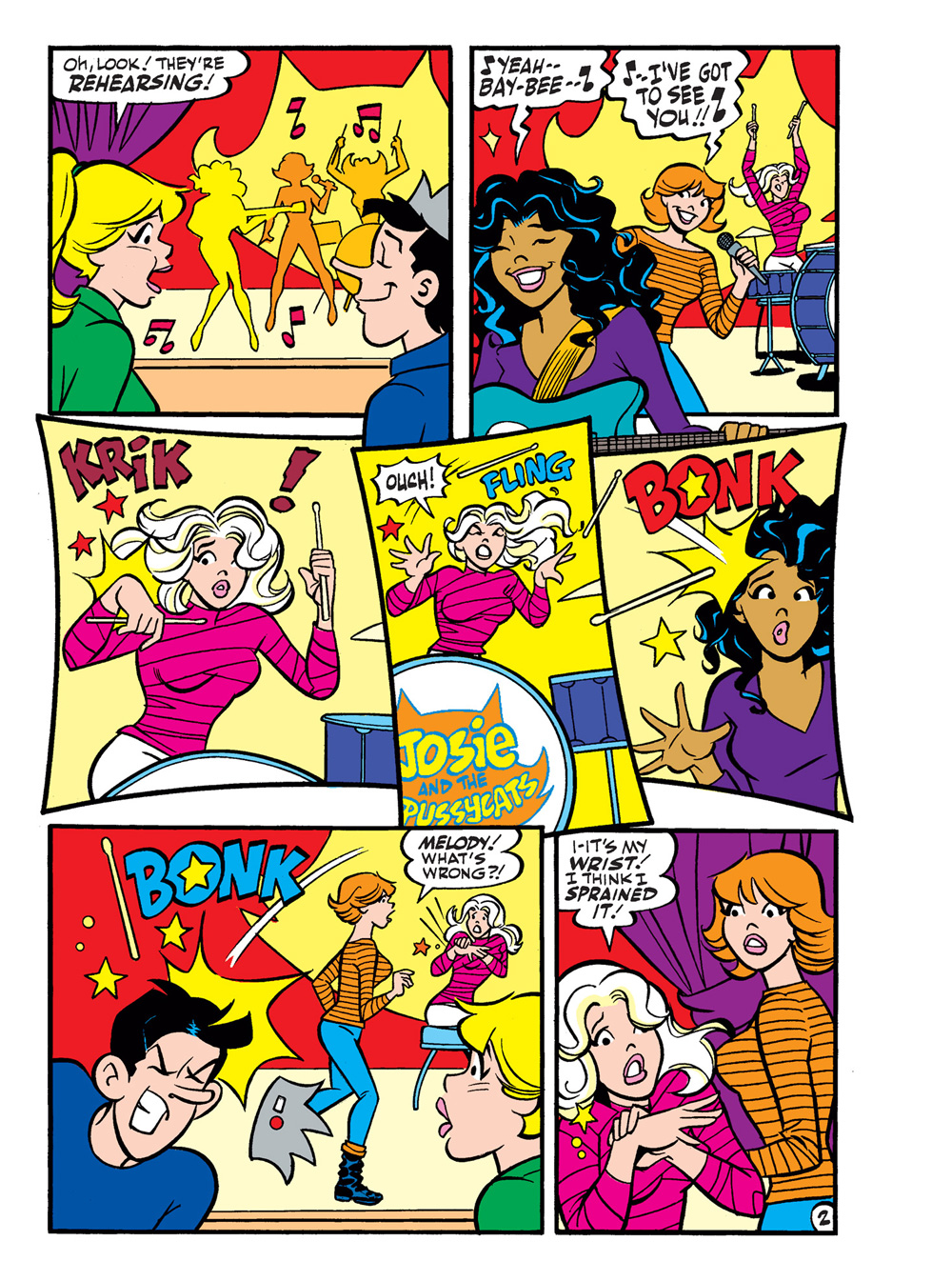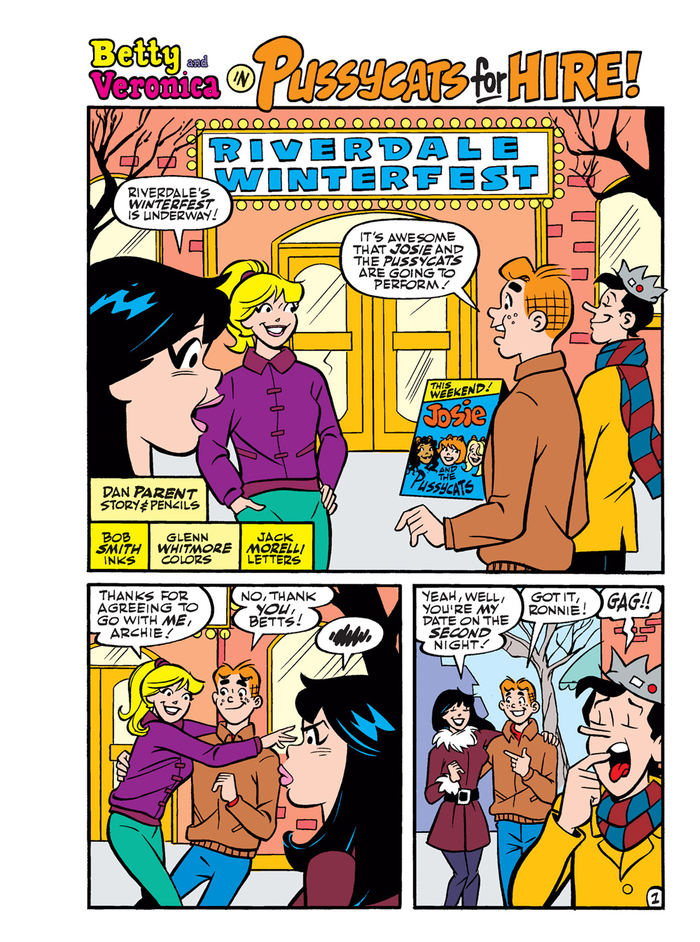 NEW CLASSIC-STYLE STORY: “Pussycats for Hire!” Josie and the Pussycats are getting ready to perform at Riverdale’s Winter Dance, when a series of unfortunate calamities cause Melody and Valerie to sustain injuries and force them to sit out the performance! In need of quick replacements, Josie calls on none other than Betty and Veronica! But what happens when Betty and Veronica AND Josie can’t play? Let’s just say there’s no rule saying you can’t have MALE pussycats…!