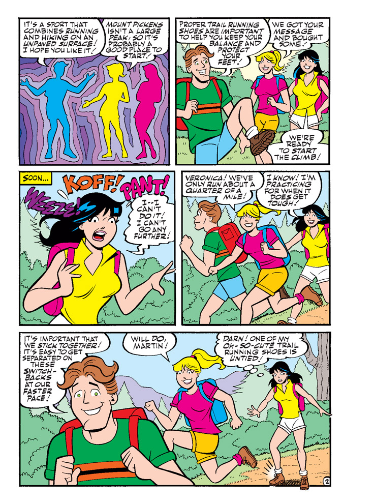 NEW CLASSIC-STYLE STORY: “Peak Shape!” Betty and Veronica decide to take up trail running—but will the mountainside provide to be too much wilderness for Veronica to handle?