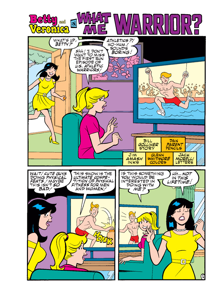 NEW CLASSIC-STYLE STORY: “What, Me ‘Warrior’?” Betty and Veronica are competing to be on an episode of US Athletic Warriors—and you may be very surprised to find out who makes the cut!