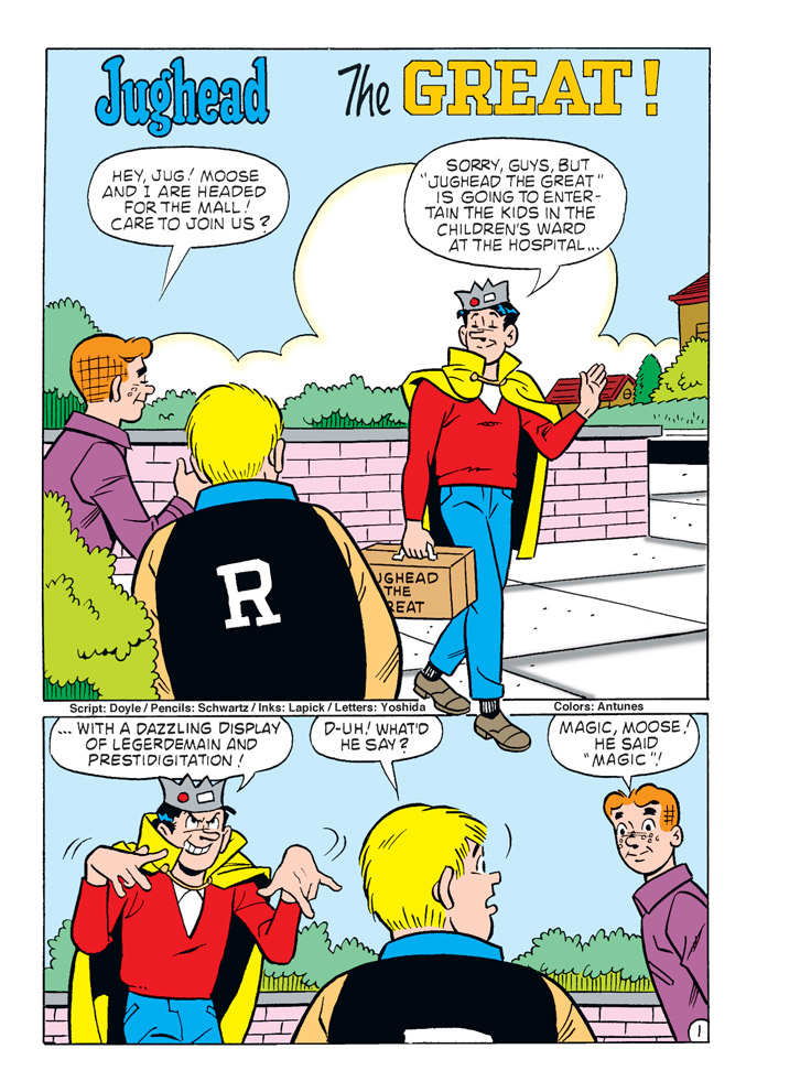 The celebrations in preparation for Archie Comics’ 80th Anniversary continue with the second issue of this special new digest series! The Archie Showcase digest series will place the spotlight on Archie Comics’ hottest characters—this time featuring Archie’s laidback best pal Jughead Jones! This digest collects the most memorable stories, including some special cameos, fun and games and more!