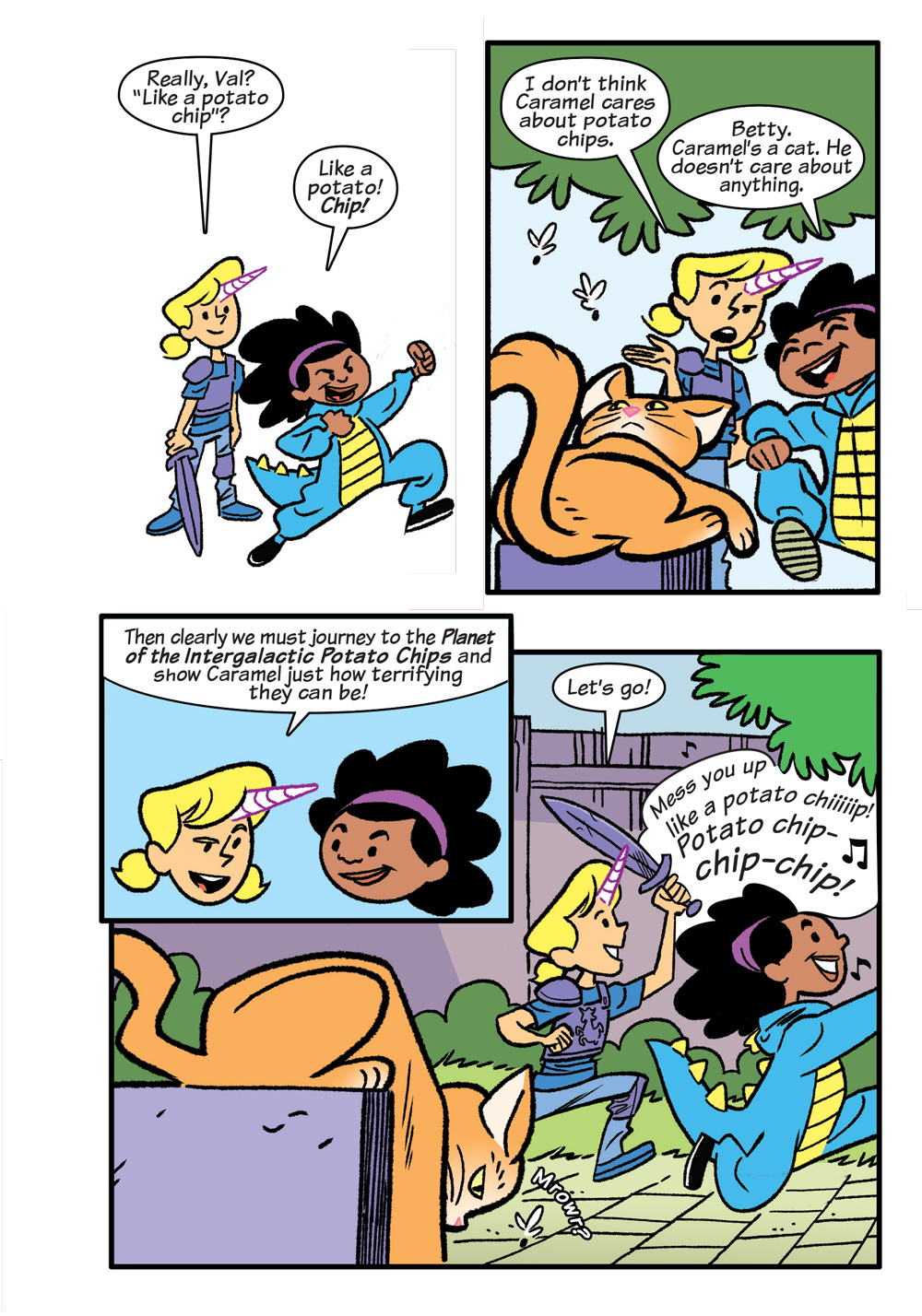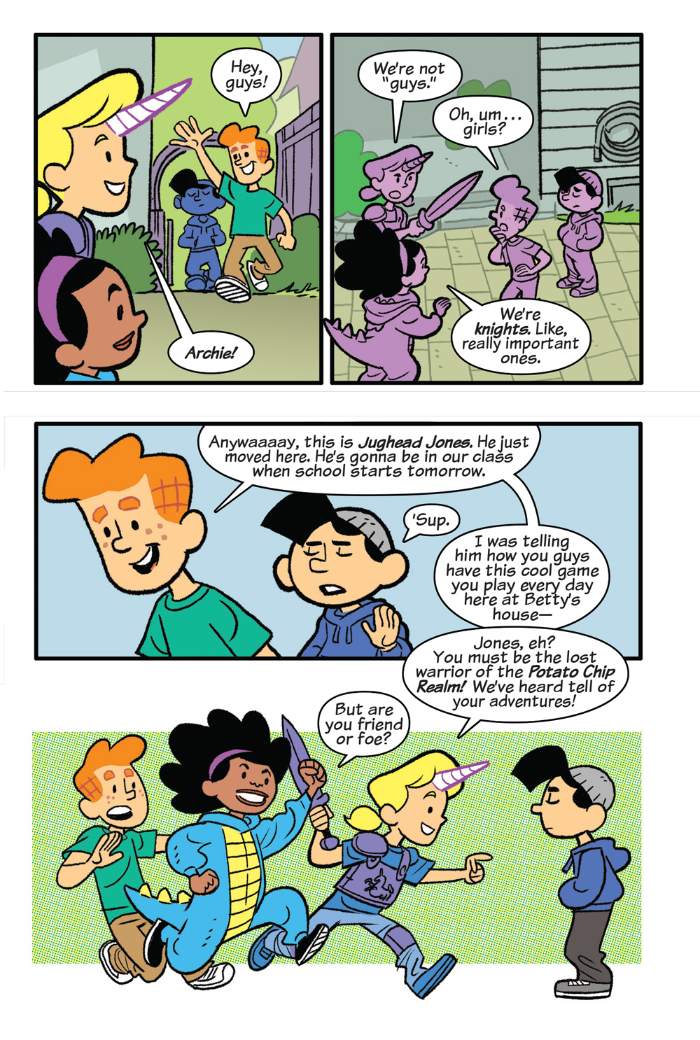 Betty Cooper and Val Smith are best friends ready to start middle school. They’ve always done everything together–taken the same classes, played the same games, and created the world of Sparklespacelandia in Betty’s backyard together–so naturally, Betty assumes they’ll continue to be an unbreakable duo once the school year starts. But Val finds herself drawn toward pursuing a music elective and does it without Betty at her side. Suddenly Betty’s on her own for the first time since Val moved to the neighborhood, and she’s struggling to deal with being lumped in with the loser drama class–that just happens to be dominated by snotty and powerful Veronica Lodge! Even the presence of other friends like Archie, Jughead, and Sabrina isn’t making Betty feel better about her estrangement from Val. Will Betty and Val find a new way to connect, or has middle school ended their friendship for good?