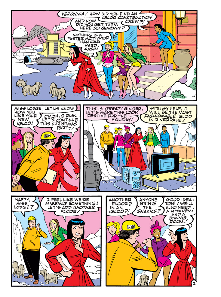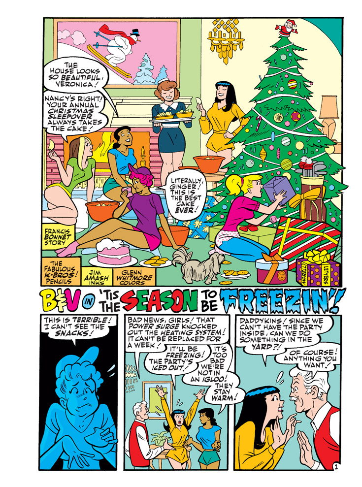 NEW CLASSIC-STYLE STORY: “’Tis the Season to be Freezin’” Veronica is hosting her Annual Christmas Sleepover Party at Lodge Mansion with her friends including Betty, Toni, Ginger and others when the heat goes out! But that’s not going to ruin Veronica’s fun—they’ll just have to take the party outside, in a custom-built igloo!