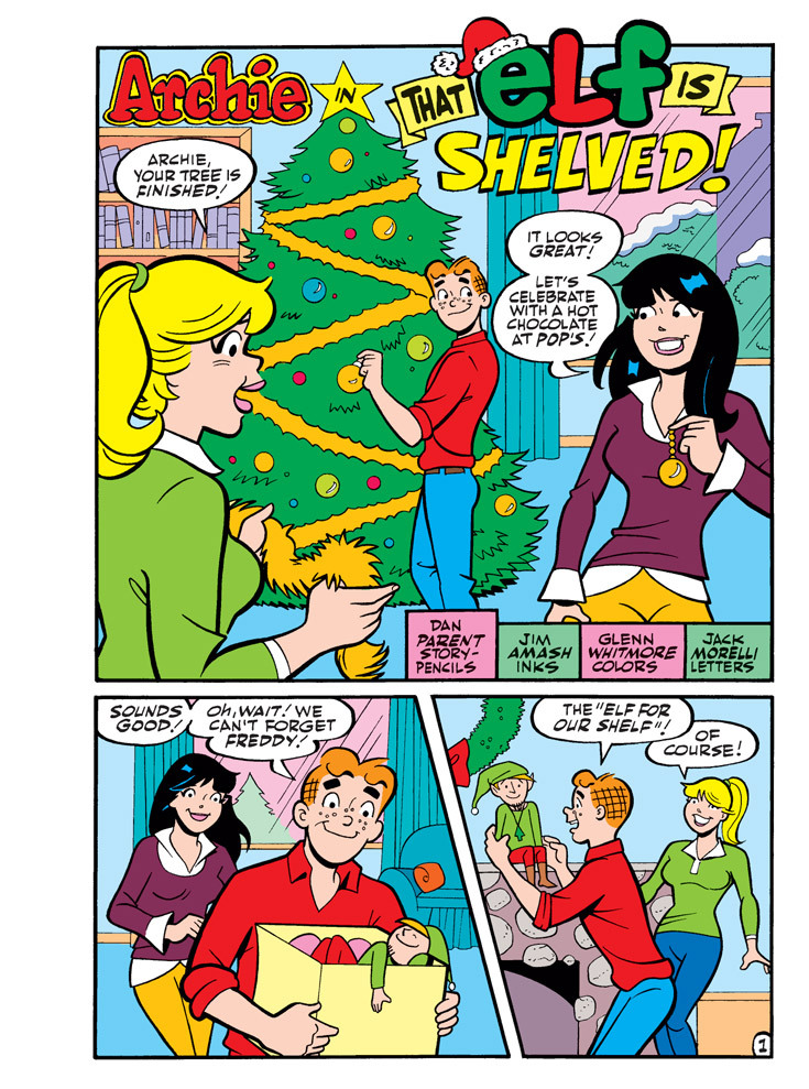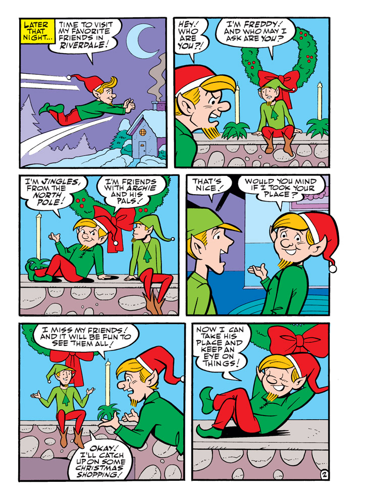 NEW CLASSIC-STYLE STORY: “That Elf is Shelved!” When Jingles takes over as the Andrews Household’s resident “Elf on the Shelf,” Santa’s nosy helper keeps interfering and causing trouble! Archie and Jughead decide to give him a dose of his own medicine, getting him in trouble with his boss…. the one and only Santa Claus himself!