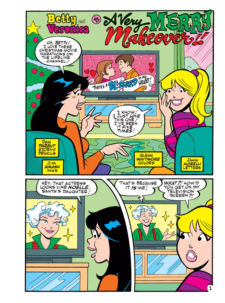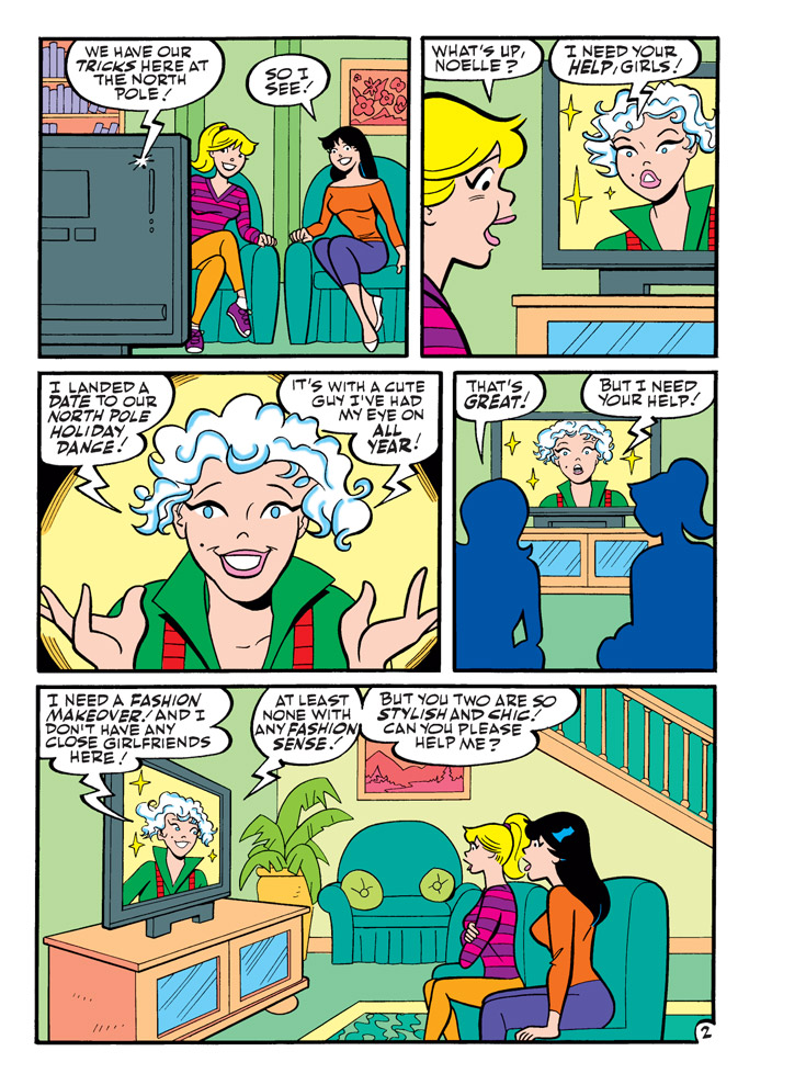 NEW CLASSIC-STYLE STORY: “A Very Merry Makeover!” Betty & Veronica get a frantic message from Noelle, Santa’s daughter. She’s finally landed a date to her holiday dance at the North Pole and is in desperate need of a makeover—which means getting to Riverdale ASAP! But how will she get there? A magical sleigh might solve her problems… or cause even more!