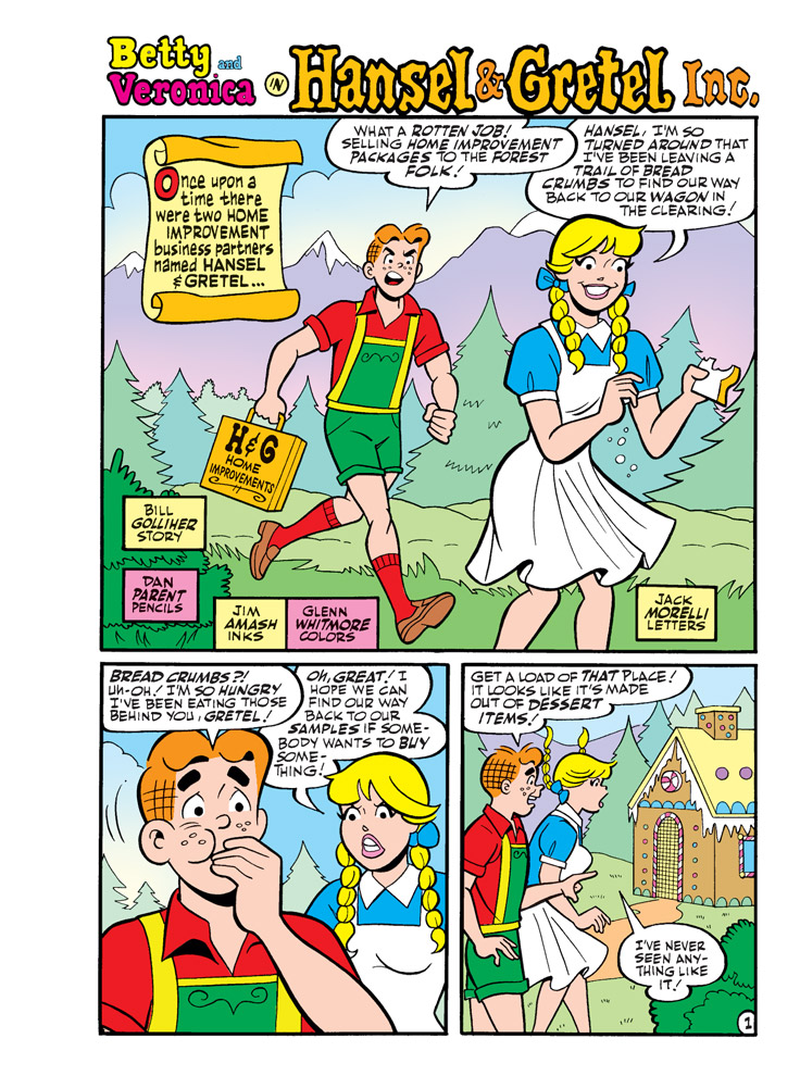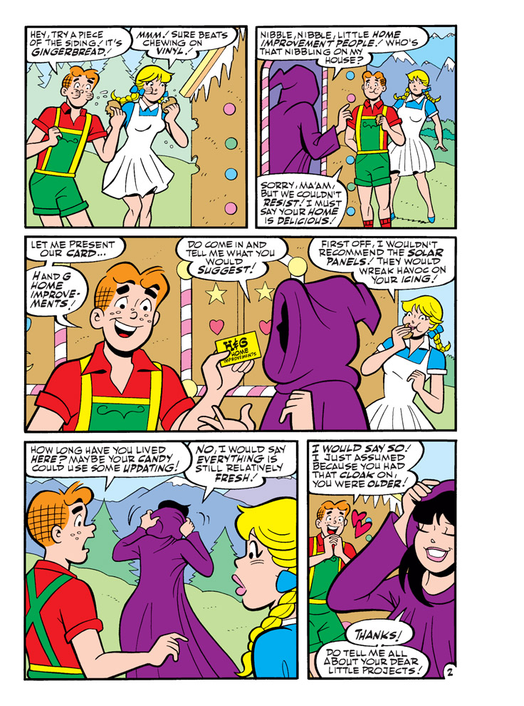 NEW CLASSIC-STYLE STORY: “Hansel and Gretel Incorporated” Hansel and Gretel are two home improvement business partners who hit the home renovation jackpot: improving a home made entirely out of sweets! This classic Brothers Grimm fairy tale gets a delicious Archie-style makeover!