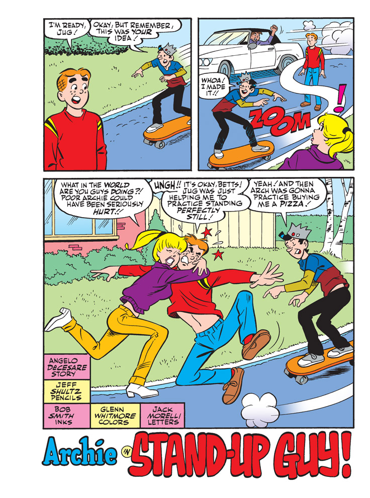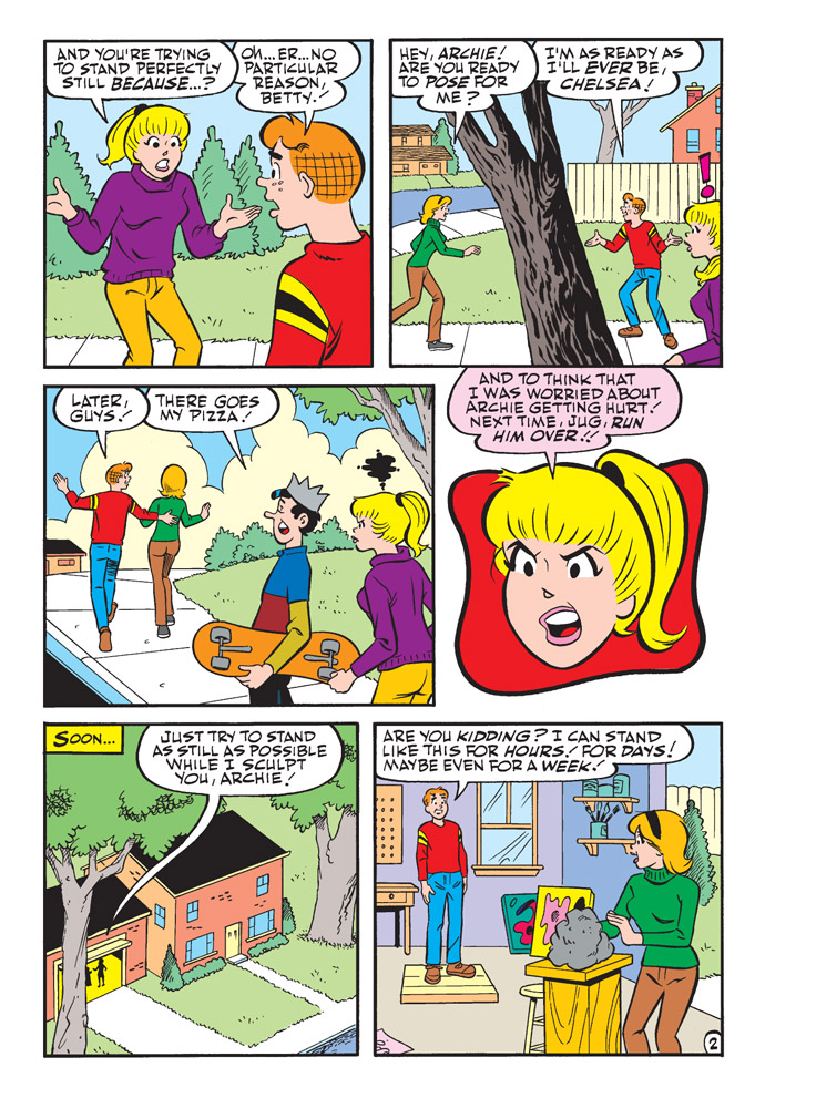 NEW CLASSIC-STYLE LEAD STORY: “Stand-Up Guy!” Archie’s got a new job—as a model for a new student’s sculpture project! But can Archie perfect the long-lost art of standing perfectly still?