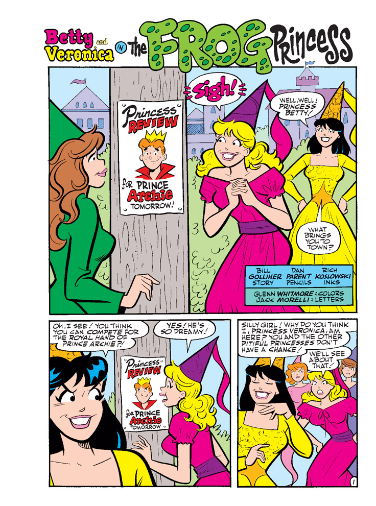 NEW CLASSIC-STYLE LEAD STORY: “The Frog Princess!” Princess Betty and Princess Veronica are both in competition for Prince Archie’s hand—so Princess Veronica goes to an extreme to make sure her rival won’t get the chance to win the Prince’s affection!