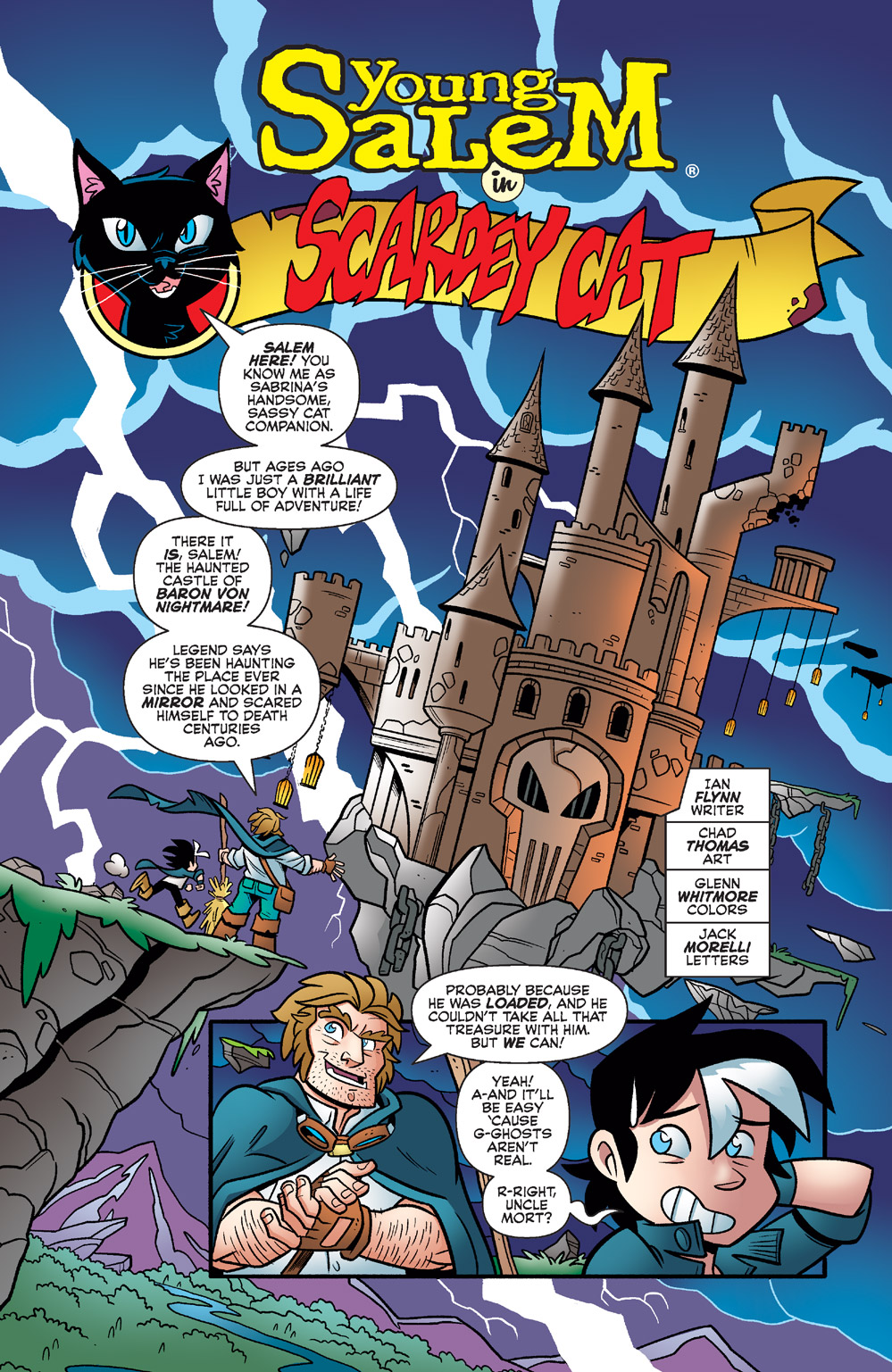 Sabrina’s furry familiar gets top billing in these fun action-adventure stories! Before he was a magical cat, Salem was an actual boy wizard! You’ll also meet his mother, Felicia, and scruffy Uncle Mort. Plus, a few classic tales of Salem’s cat adventures!
