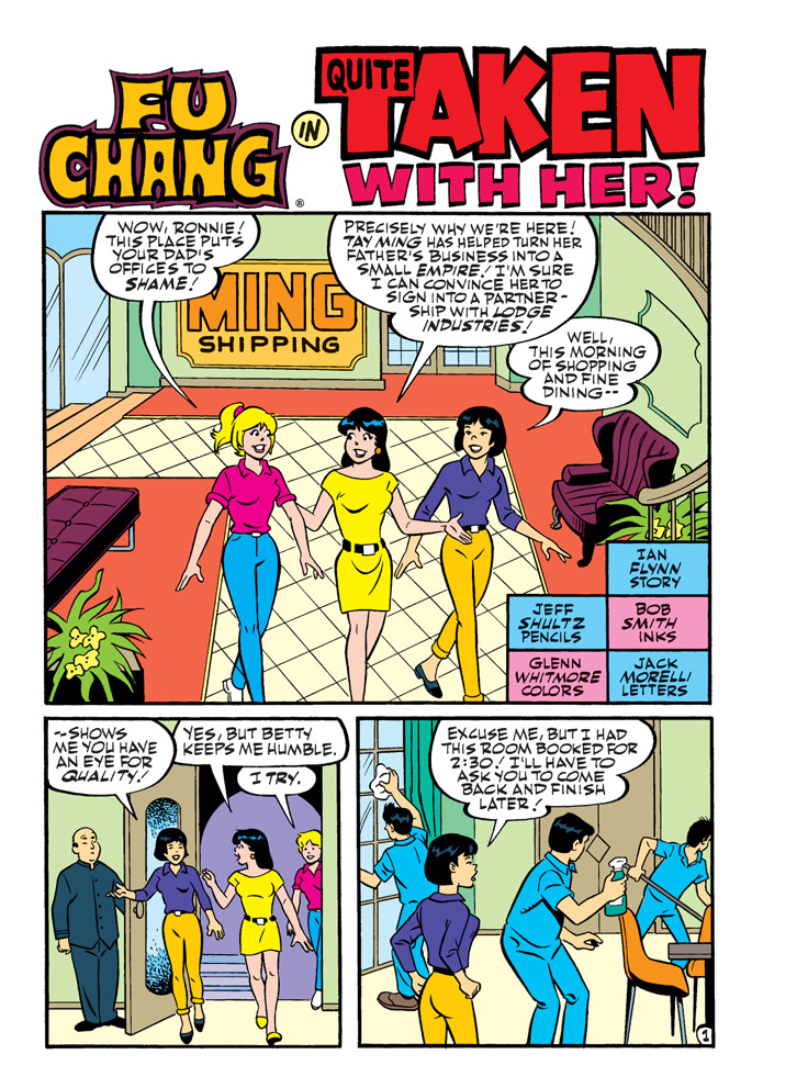 TWO NEW CLASSIC-STYLE STORIES: First, in “The Pied Piper of Riverdale,” Betty is the pied piper who promises to rid Riverdale of its vermin in this Archie take of the classic fairytale story. Then, in “Quite Taken with Her,” Betty tags along with Veronica on a power meeting with Tay Ming, heiress to the Ming Shipping empire. But when Tay and Veronica are grabbed by kidnappers, Detective Fu Chang is on the scene—but is he already too late?