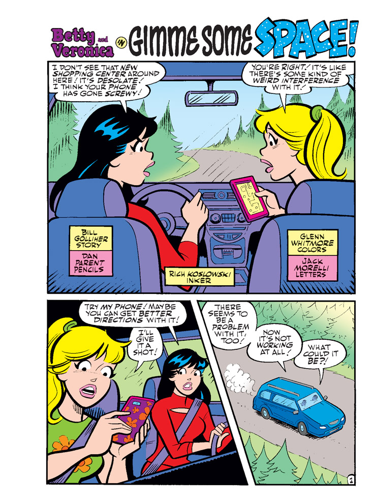 BRAND NEW CLASSIC-STYLE STORY: “Gimme Some Space!” Betty and Veronica are in for an out-of-this-world surprise when Betty’s GPS leads the two of them to a desolate area—where Veronica’s car is lifted to a new planet! Could this really be happening?!