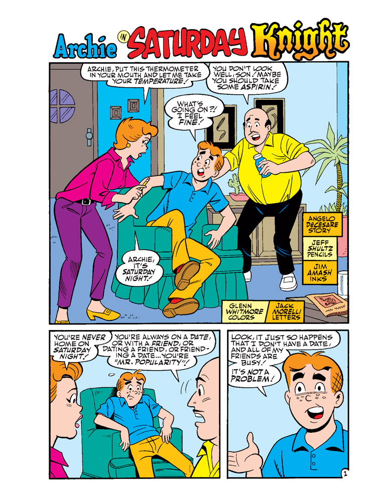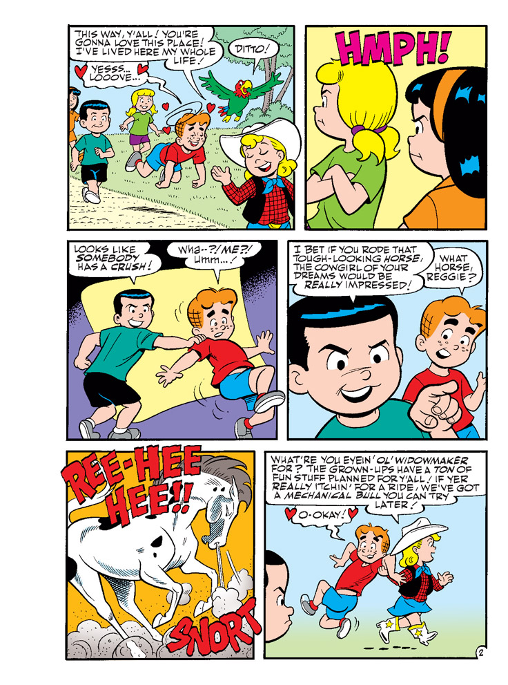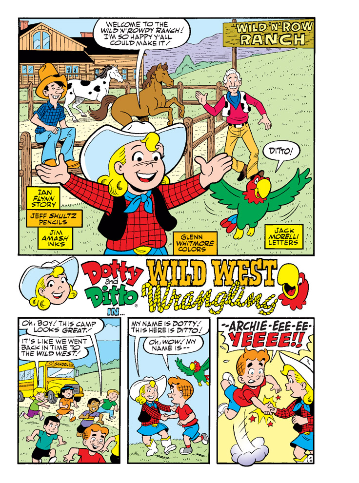BRAND NEW CLASSIC-STYLE STORIES: In “Saturday Knight!” Archie doesn’t have any plans for his Saturday night—so he spends it around town, enjoying some “me” time. But Archie’s solo adventure might just make him the most popular guy in town! Then, in “Wild West Wrangling,” Li’l Archie and the gang are at a Wild West-themed summer camp. Archie is immediately smitten by Dotty and is soon coerced by Reggie to try and ride the Stormin’ Stallion to impress her!