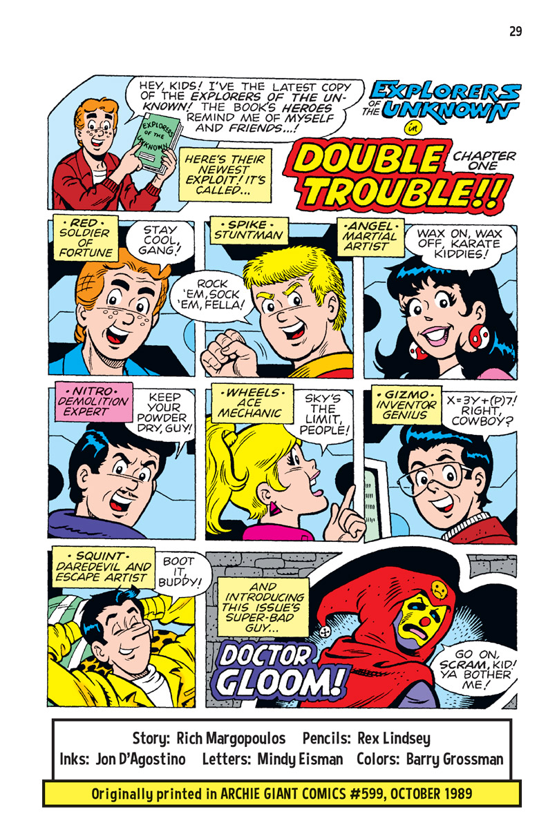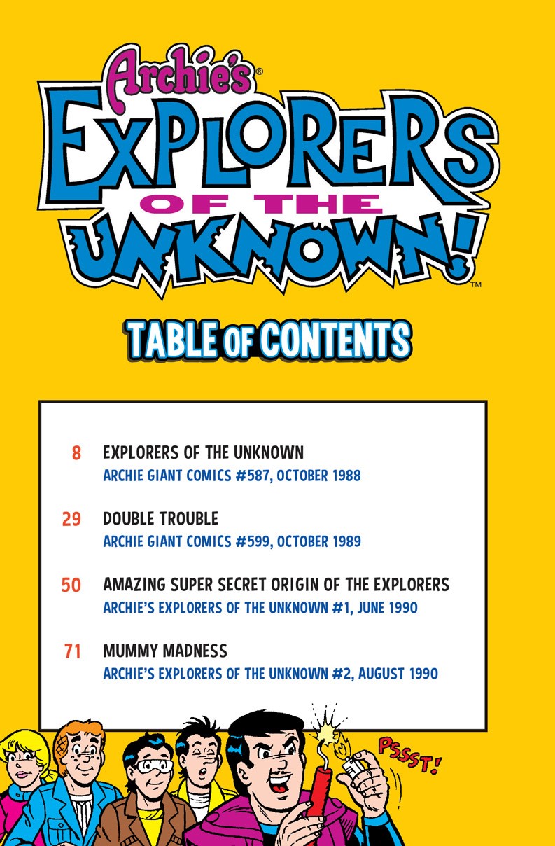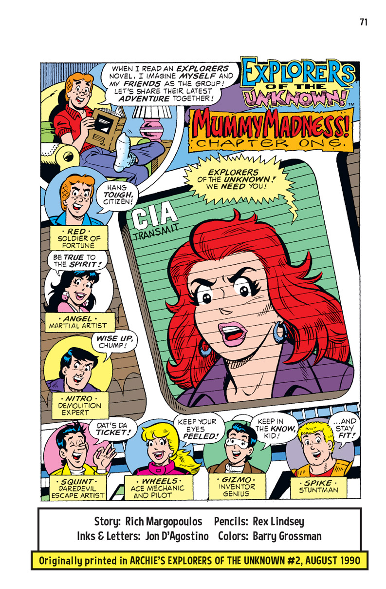 Monsters! Giant robots! Maniacs and masterminds! When evil rears its ugly head, you can be sure that the Explorers of the Unknown will be there to save the day! Join the team of heroes, who look a lot like our favorite Riverdale teens, as they battle a rogue cyclops, a giant crab monster, and the diabolical Doctor Gloom! Will these soldiers of fortune be able to triumph over the forces of evil? Find out in over 160 pages of action and adventure!