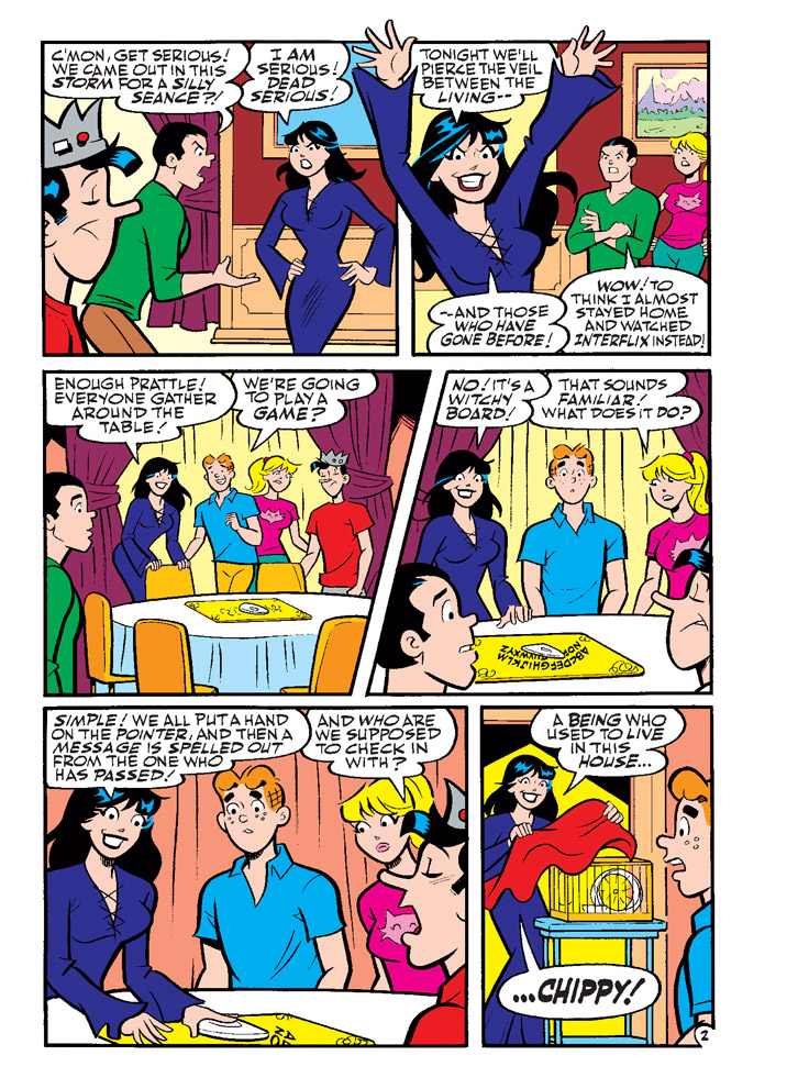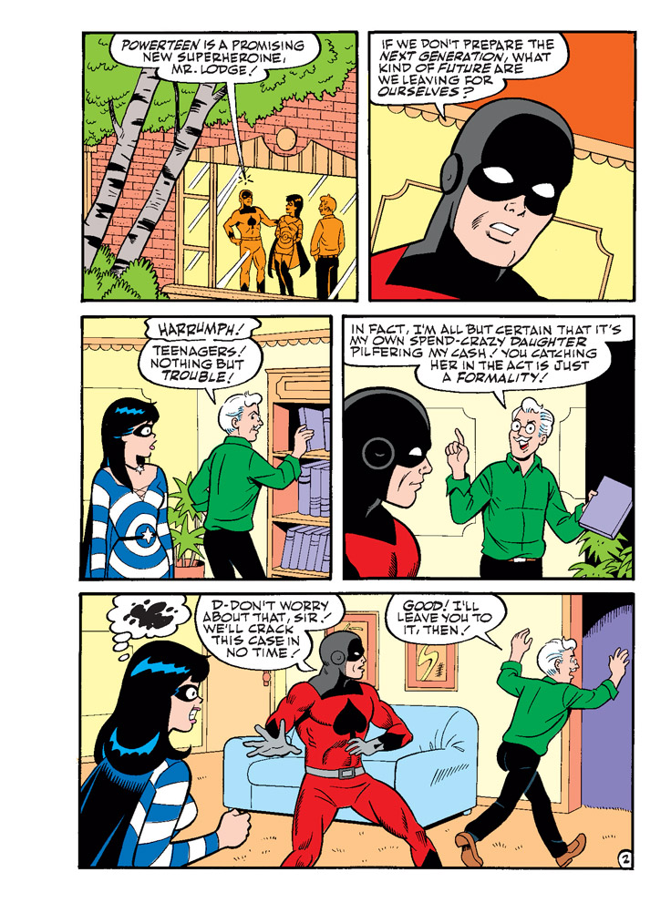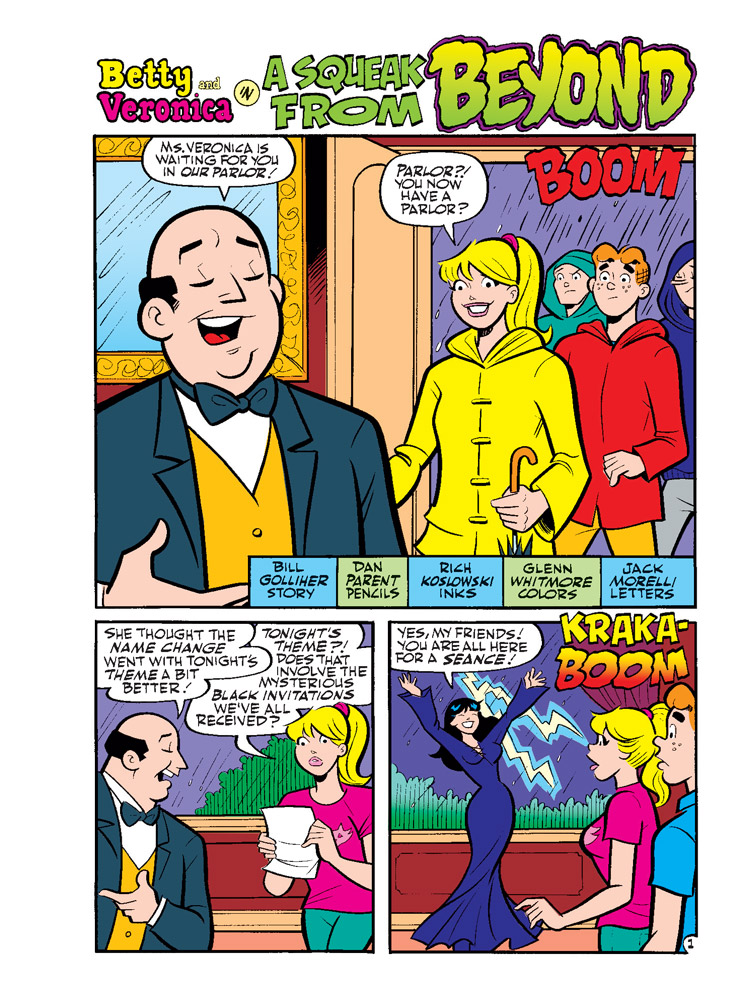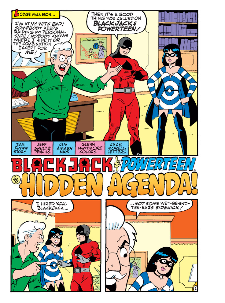 TWO NEW CLASSIC-STYLE STORIES: “A Squeak from Beyond!” A fun night at the Lodge Mansion gets a supernatural twist when Veronica gets everyone to try to communicate with others from the great beyond! But will everyone be convinced of Veronica’s new abilities? Then, get ready for a bonus PowerTeen and Blackjack superhero adventure, “Hidden Agenda”!