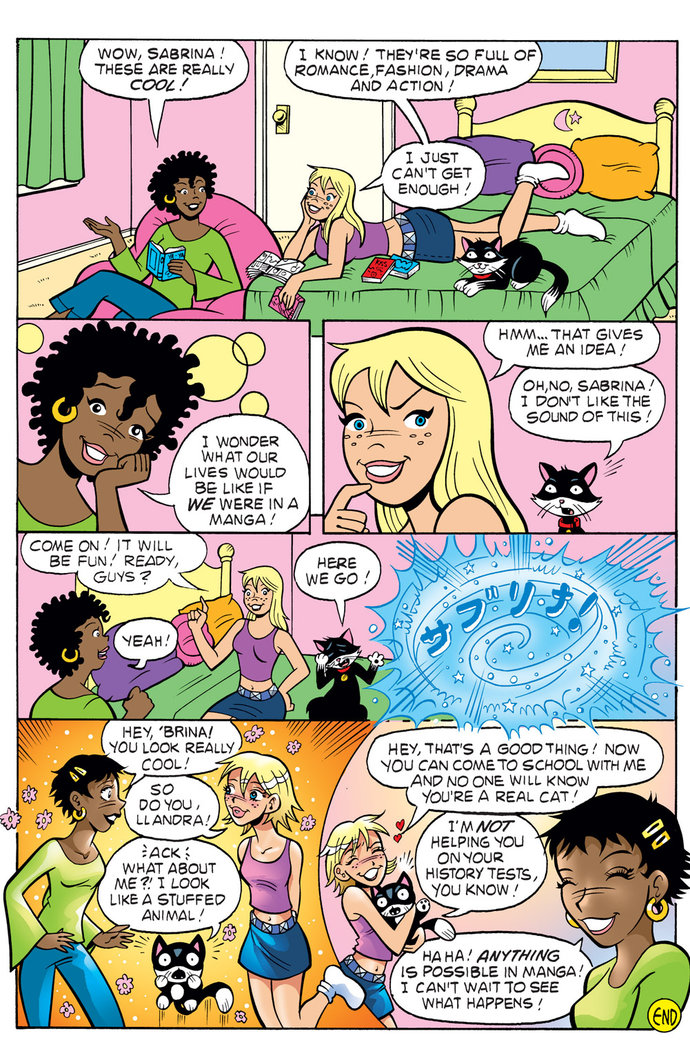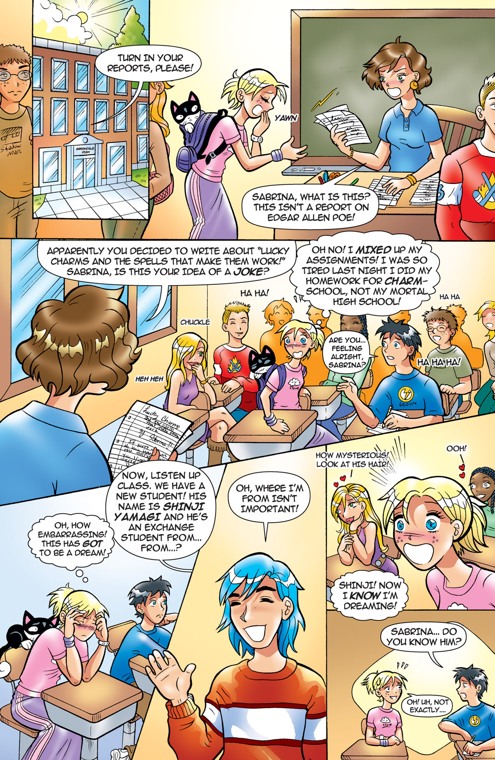 Following the adventures of teenage witch, Sabrina, and her wacky aunts and talking cat! Sabrina Spellman is your average teenager by day, attending Greendale High where her crush Harvey plays for the school basketball team. But by night, Sabrina enters the magic realm where she hones her witchcraft and attends charm school with the handsome and mysterious Shinji! Start from the very beginning as Sabrina deals with her two eccentric aunts and her conflicting lives in the Mortal and Magic realms, presented with a manga-style makeover, collected in full-color!