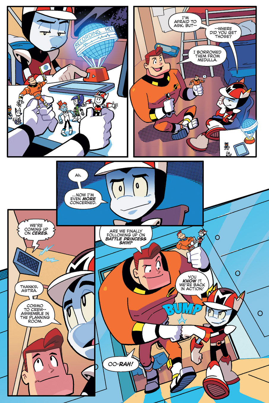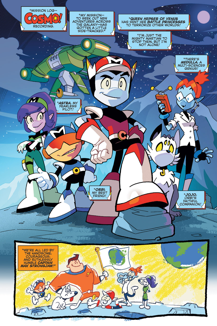 Cosmo is the adventurous, quick-witted captain of his Martian crew. Together, they travel space in search of adventure and to help those in need! Cosmo’s strength and leadership are tested as the villainous forces of Venus threaten the universe, as well as the thing Cosmo treasures most: his friends! In order to protect them, the Mighty Martian will have to seek out ancient treasures, battle monstrous mutants and go beyond brave in this adventure-filled, all-ages follow-up to the award-winning COSMO VOL. 1: SPACE ACES! Collects the full five-issue COSMO THE MIGHTY MARTIAN mini-series.