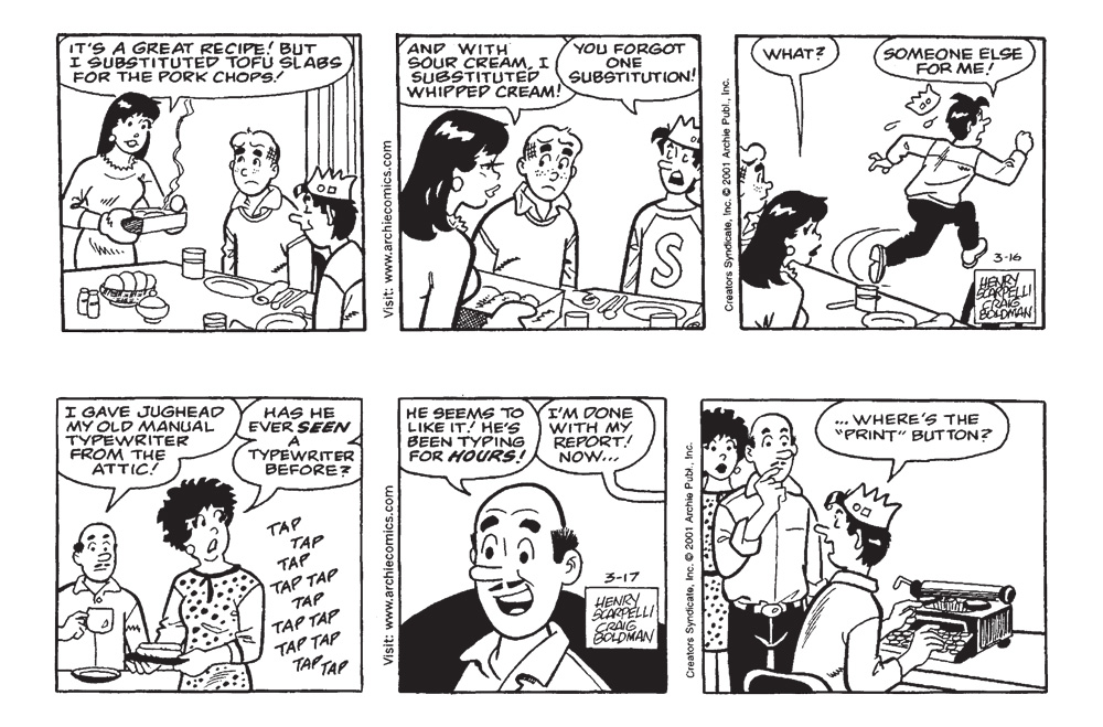 For the first time ever collected digitally, read a full year’s worth of some of Archie’s funniest daily and Sunday newspaper comic strips! A modern take on the classic newspaper funnies that gave Archie widespread appeal, these hilarious gags are brought to you in both full color AND black and white, just as they were originally printed in newspapers!