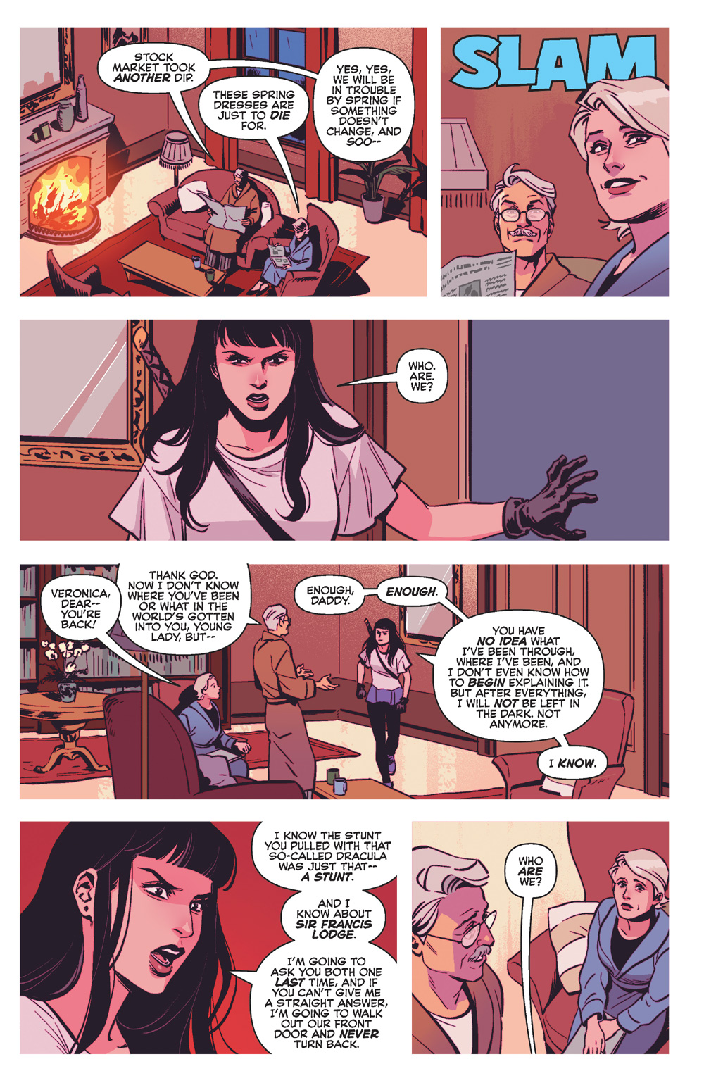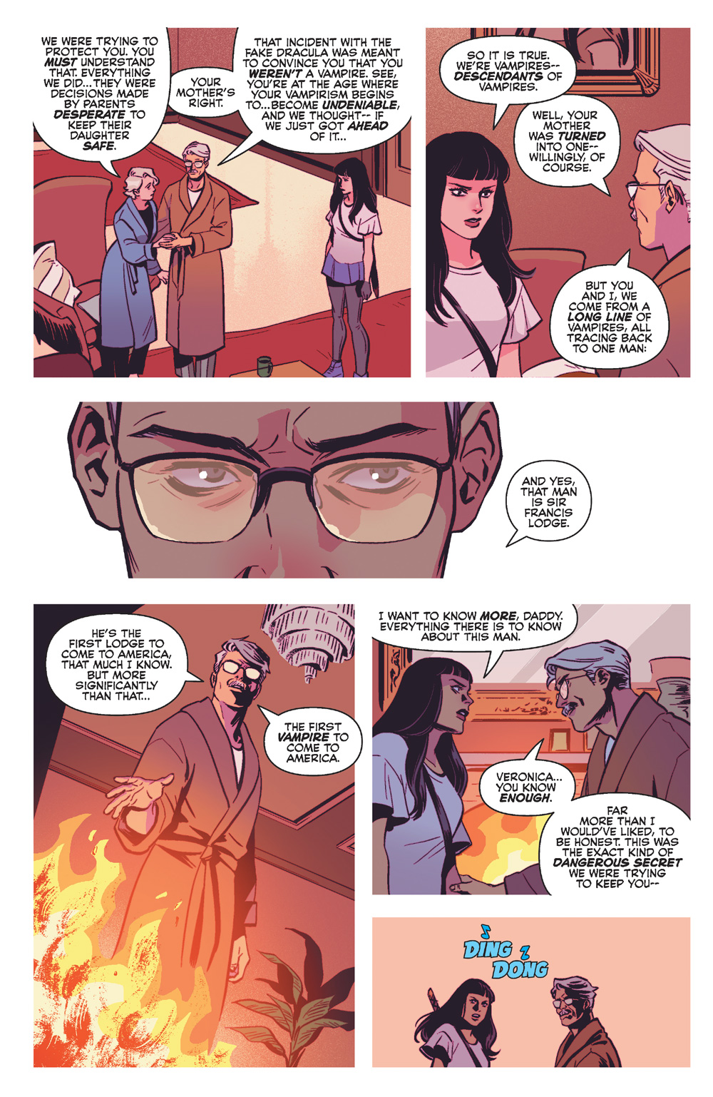 Riverdale’s own bombshell bloodsucker is back! Following the events of the Jughead the Hunger vs. Vampironica crossover, Veronica returns to her own universe, still a vampire. She’s not the same, and she knows it. And now she needs answers. But she may not be ready for what she’s about to discover! Collects the full four-issue Vampironica: New Blood miniseries.
