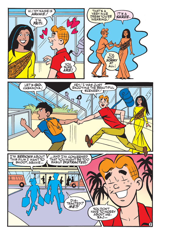 This month, digests go global! In the NEW LEAD STORY “From India, with Love,” Archie’s friend Raj needs help with a movie he’s making, so Archie travels with him to India!