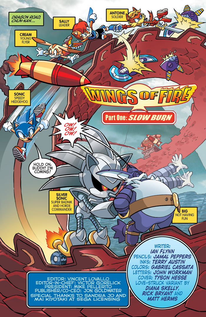 SONIC is SPEEDING down the Dragon Road in “Wings of Fire” Part One: Sonic and the Freedom Fighters travel to city-state of Chun-nan in search of more Gaia Keys! Dulcy the dragon is bringing all her might to help, but is her fledging team ready for end-of-the-world stakes? Could anyone really be? Then in “Homesick,” Bunnie and Tails come to the aid of a Key Guardian in a time of crisis! Featuring Cover art by the totally-terrific Tyson Hesse and a special “Love Struck” variant by the super-expressive Diana Skelly!