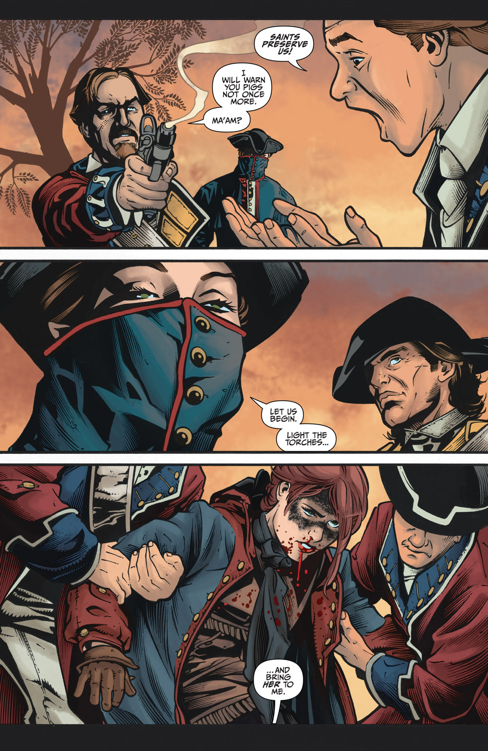 “The Lonely Crusade, Part 3” An unlikely ally leads the Black Hood to the Crusaders’ secret lair—and what the Hood finds inside will shock you. If you thought the shotgun blast to the face in issue #1 was brutal, steel yourself for the savage hardboiled action of this one, folks. Nobody’s going to walk away clean… Join us as we welcome new series artist GREG SCOTT (Sam Hill, Strange Attractors) to THE BLACK HOOD.