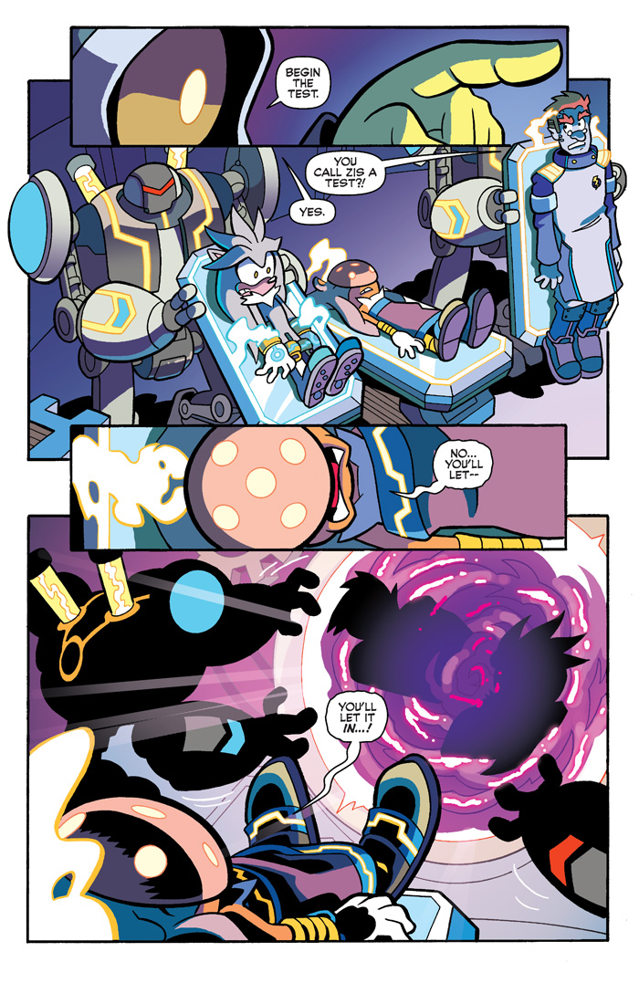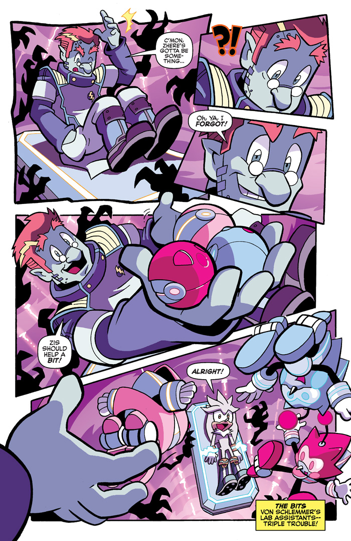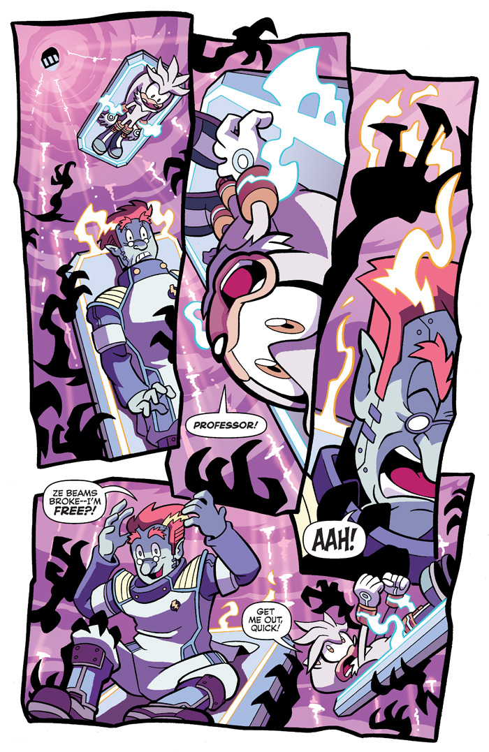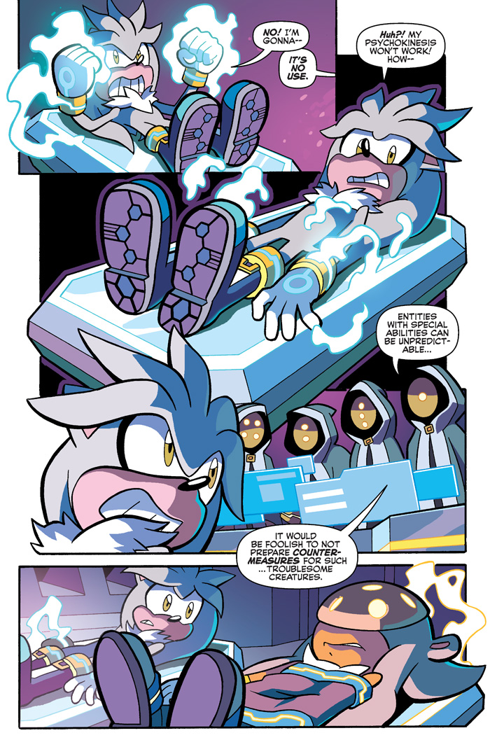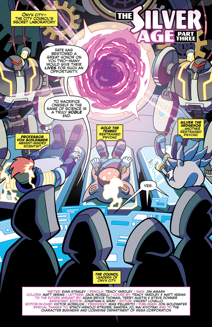 SILVER FIGHTS for his FUTURE in “The Silver Age” Part 3: Silver is at the mercy of the heartless council, but their cold nature is nothing compared to the evil then unleash! Gold’s mysterious past is now revealed, as well as how it’s tied to the current calamity. Will it be up to Silver to save his future once again? Featuring cover art by long-time Sonic Comic artist, Tracy Yardley and a “To the Future” variant by newcomer Adam Bryce Thomas!