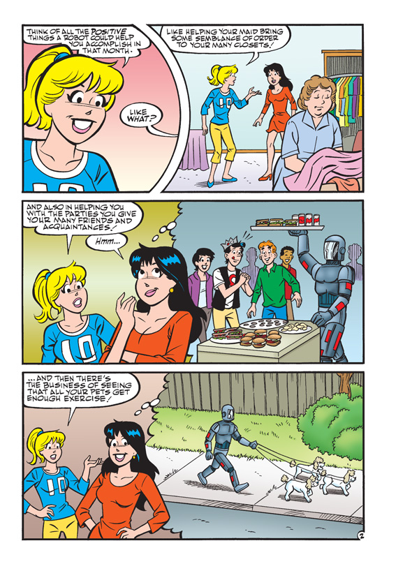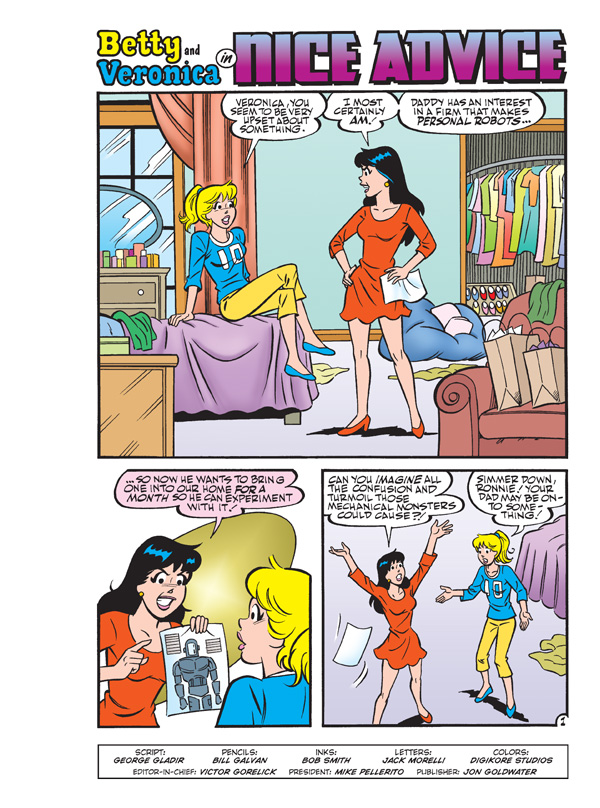 The BFFs are back with even more pages of fun! Veronica’s upset—her father plans on buying a robot for their mansion. Wait—what’s so bad about that?! Veronica’s convinced this new robot will cause nothing but turmoil in her family’s home, but Betty disagrees. Will this robot be a help or a hindrance? Find out in “Nice Advice!”, the fun ALL-NEW lead story to this comics annual!