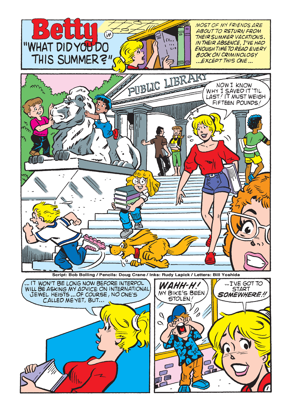 You can preview those below, along with the full action-packed Betty Cooper classic, “What Did You Do This Summer?” by Archie Legends Bob Bolling and Doug Crane!