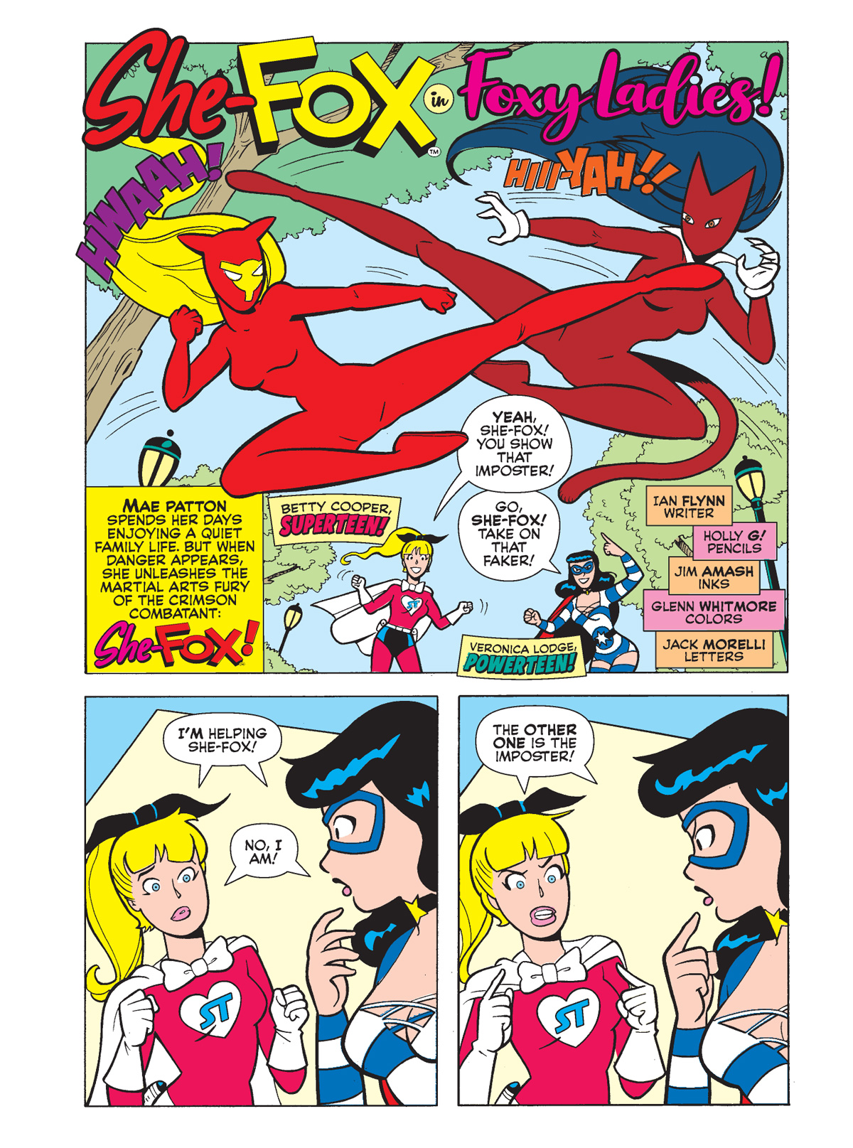 First up is “Foxy Ladies” by our resident Archie Action expert Ian Flynn and artist Holly G! In this one, She-Fox is back but she’s facing off against . . . another She-Fox?! This looks like a problem for Betty and Veronica — a.k.a. Super Teen and Power Teen — to sort out if they can!
