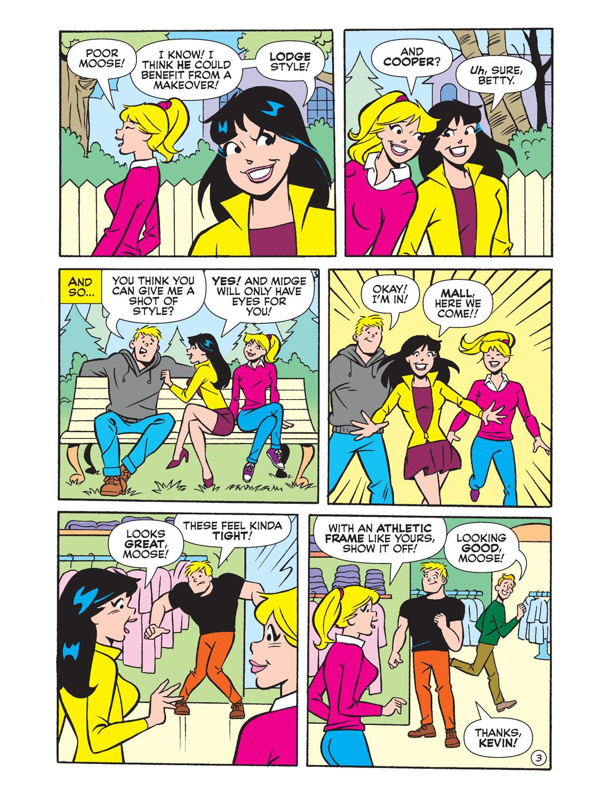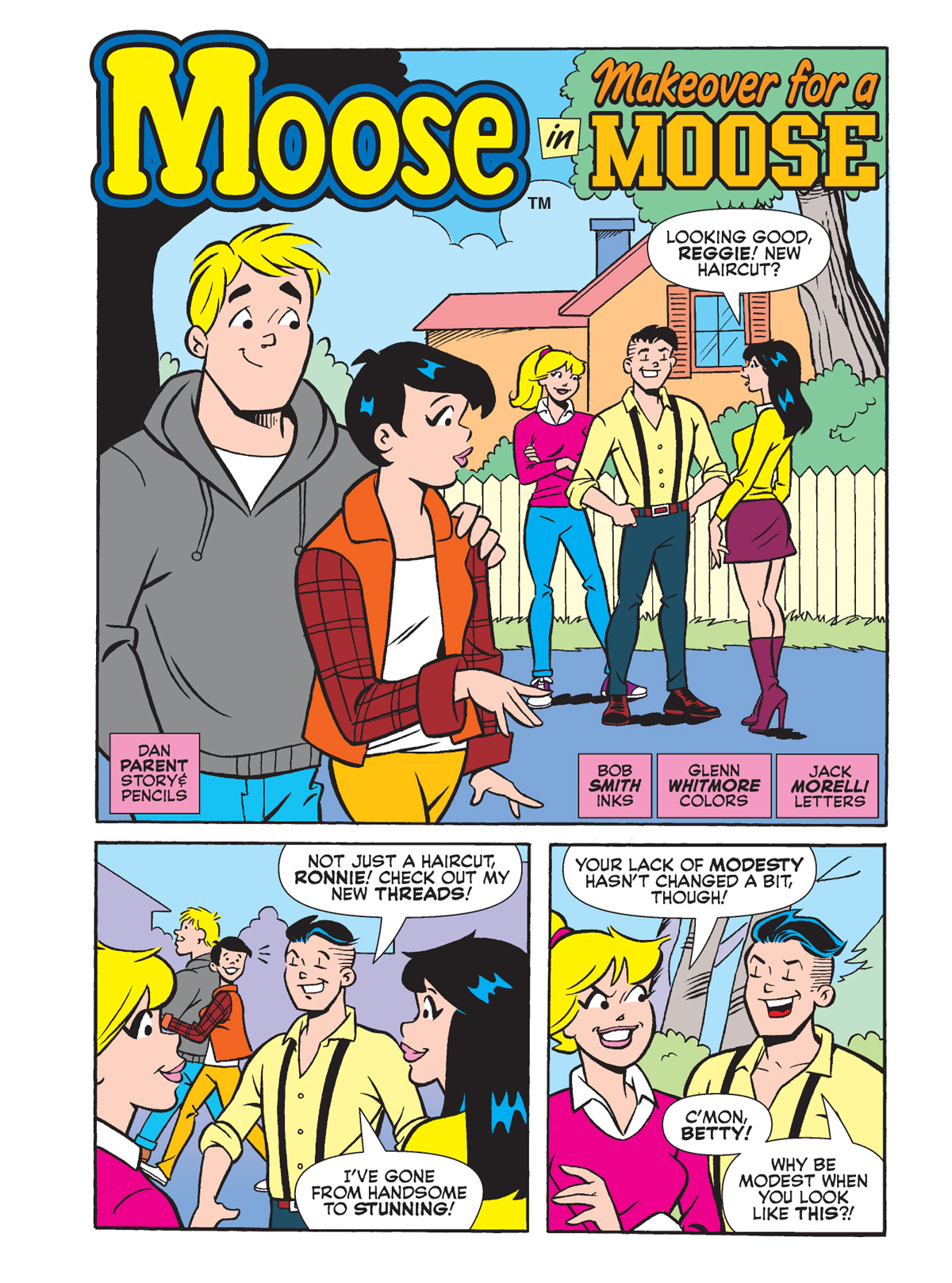 Then, Big Moose gets a big makeover when he sees what a new haircut and clothes can do for rival Reggie. But is a new Moose the kind of Moose that Moose wants to be? We’ll find out in the all-new story by Dan Parent!