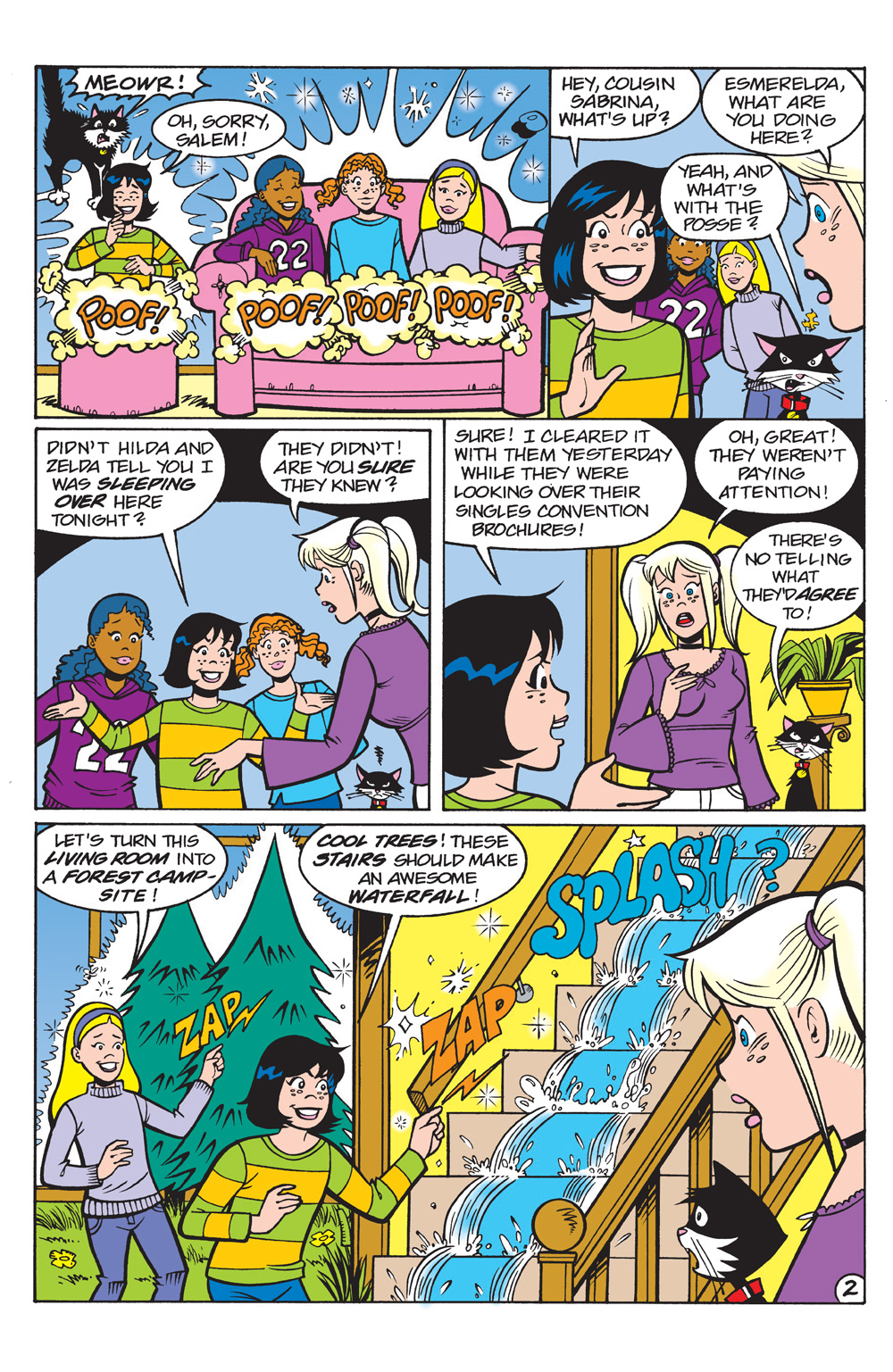 That’s right — Sabrina is invited to this pajama party but it’s at the creepy old Cabot mansion and it seems even she’s taken aback by the strange goings on. Uncover the mystery in “Catnapped!” by Dan Parent, an all-new story in today’s BETTY & VERONICA FRIENDS FOREVER: SLEEPOVER.