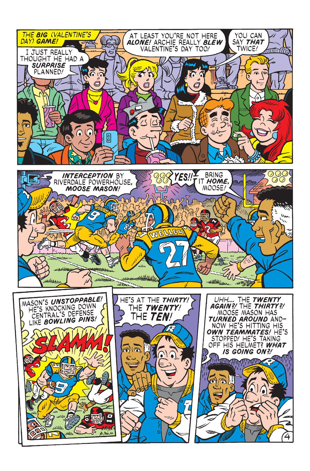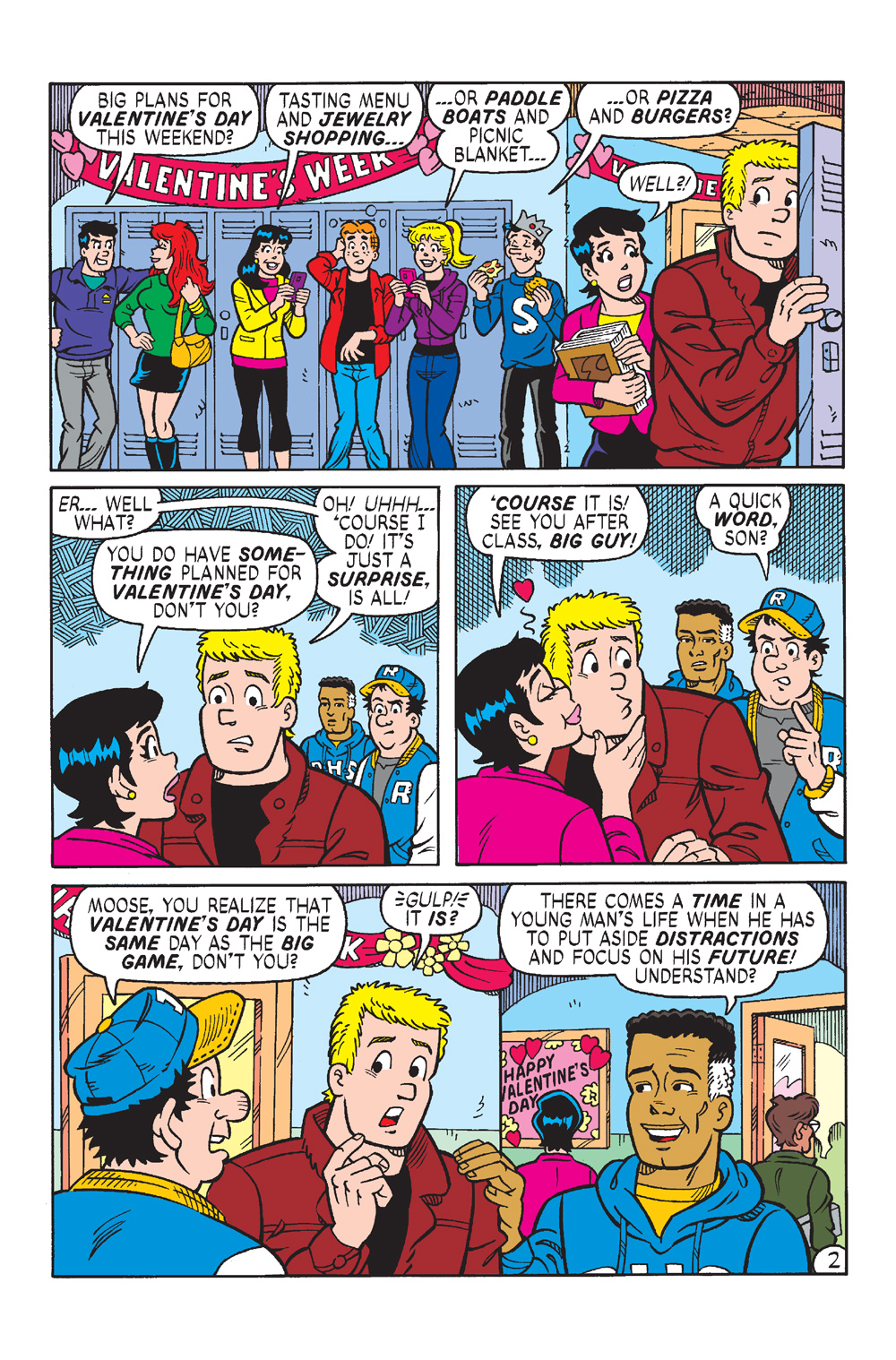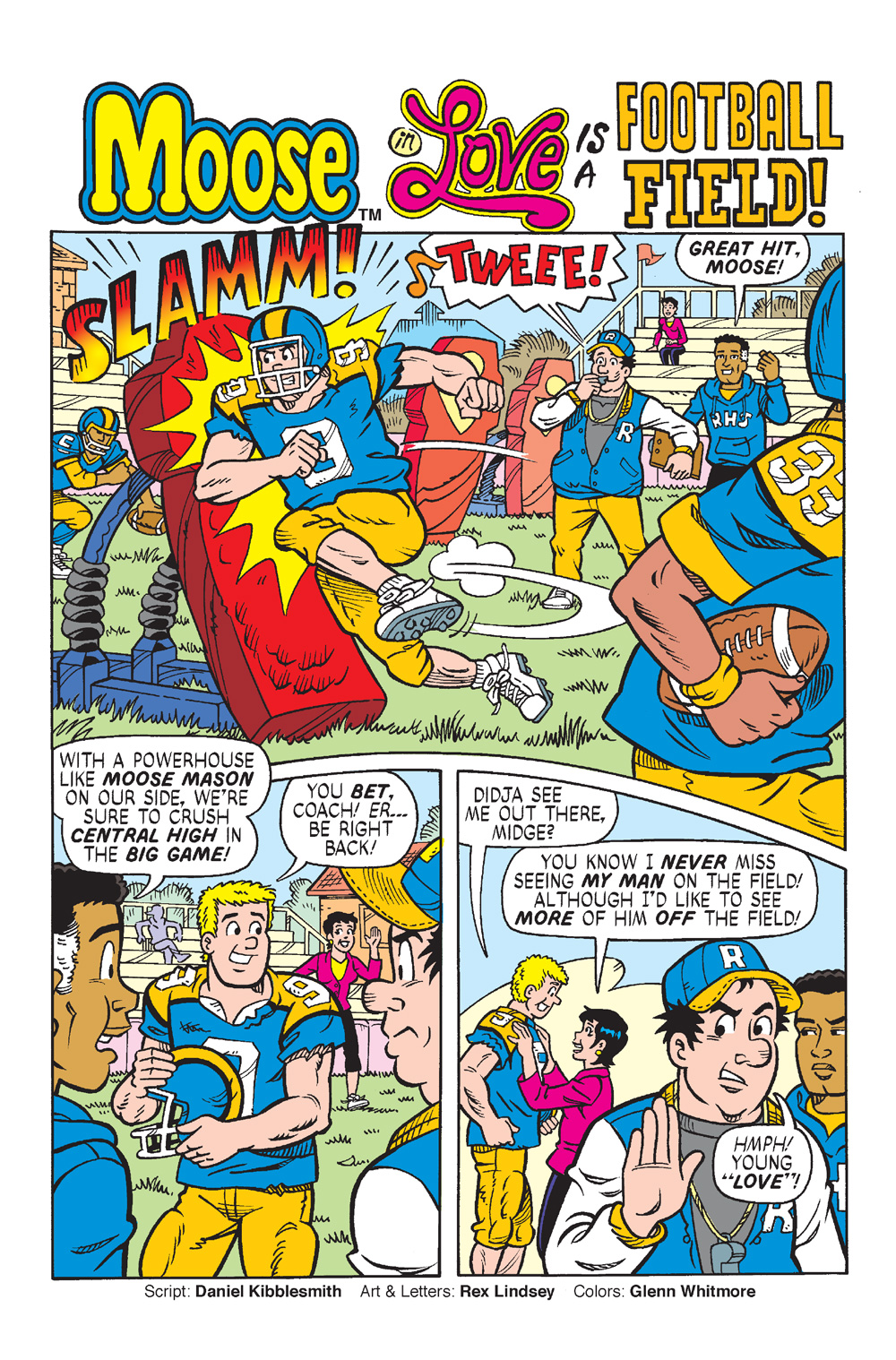 And that’s just the start of a full collectible keepsake celebrating the season with classic Valentine’s hijinx from throughout Archie history. Start reading now with the complete Moose Mason misadventure “Love Is a Football Field” by Daniel Kibblesmith and Rex Lindsey, right after the preview. When you’re caught up, you can get your own copy here for yourself and/or that special someone!
