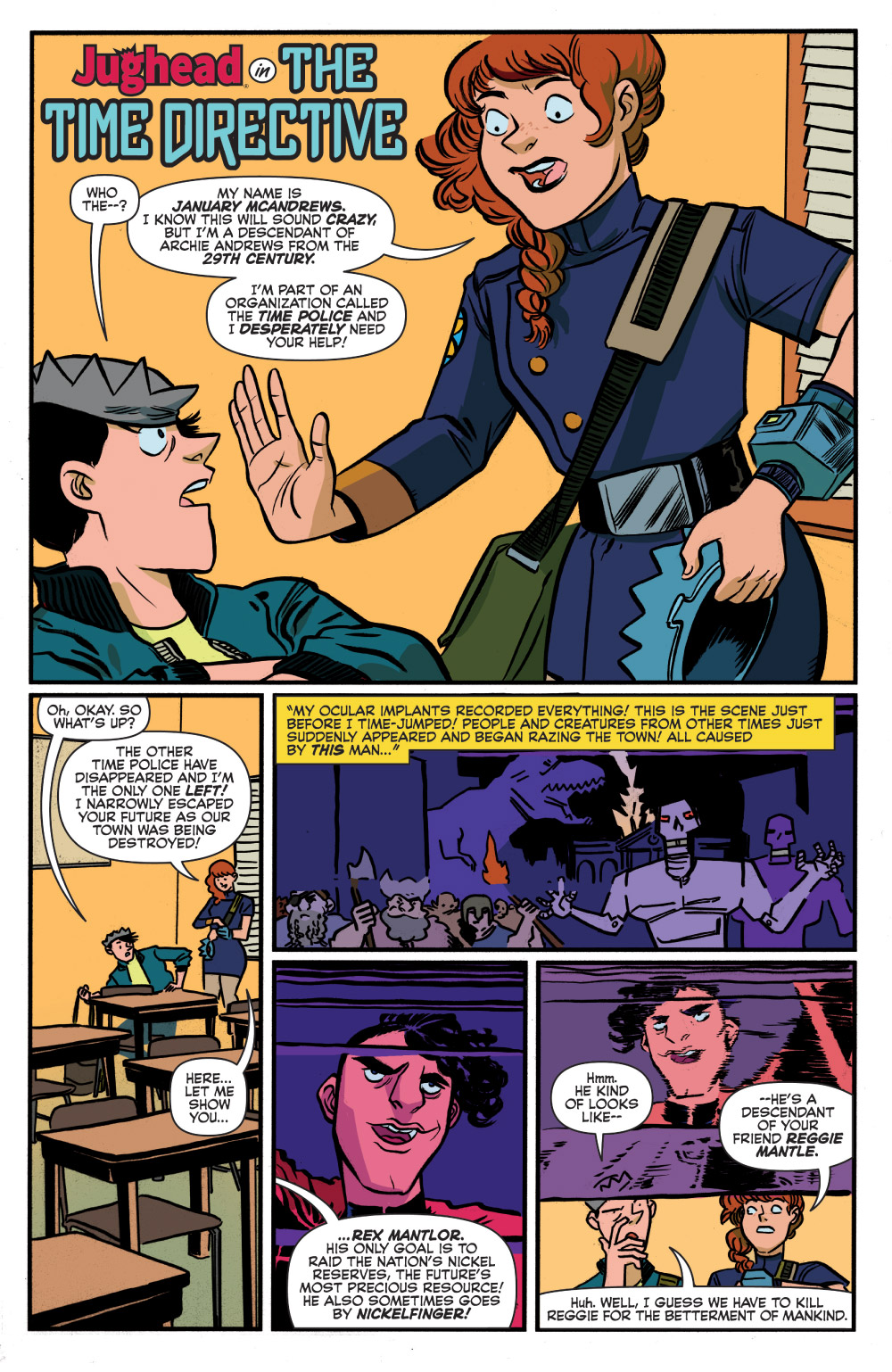 Zdarsky and Henderson return with the next issue of the all-new Jughead! Things continue to be amiss at Riverdale High as Coach Clayton gets replaced by a tough-as-nails, take-no-prisoner Phys-Ed teacher! Can he be stopped or will Jughead have to become… physically active? The answer lies in the far future…