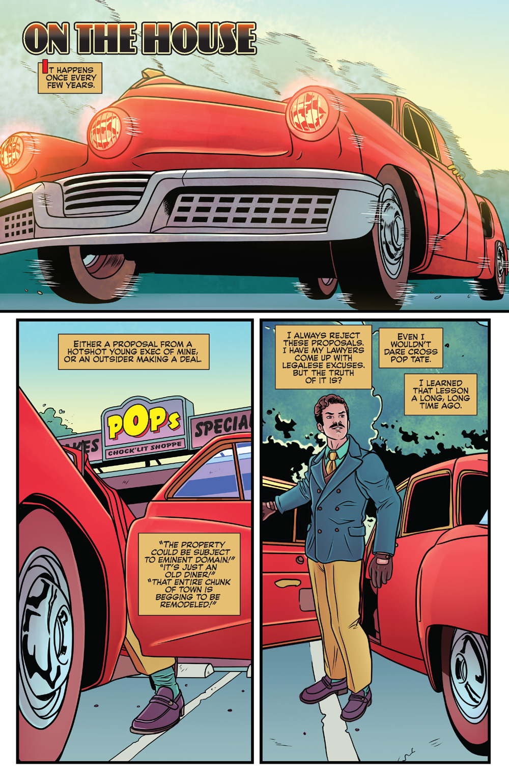 You may remember when we first learned that our trusty local diner proprietor had a sinister side in last year’s original POP’S CHOK’LIT SHOPPE OF HORRORS comic. Today’s follow-up has three all-new stories by the same incredible creative team, and this time they’re going back to where it all began!