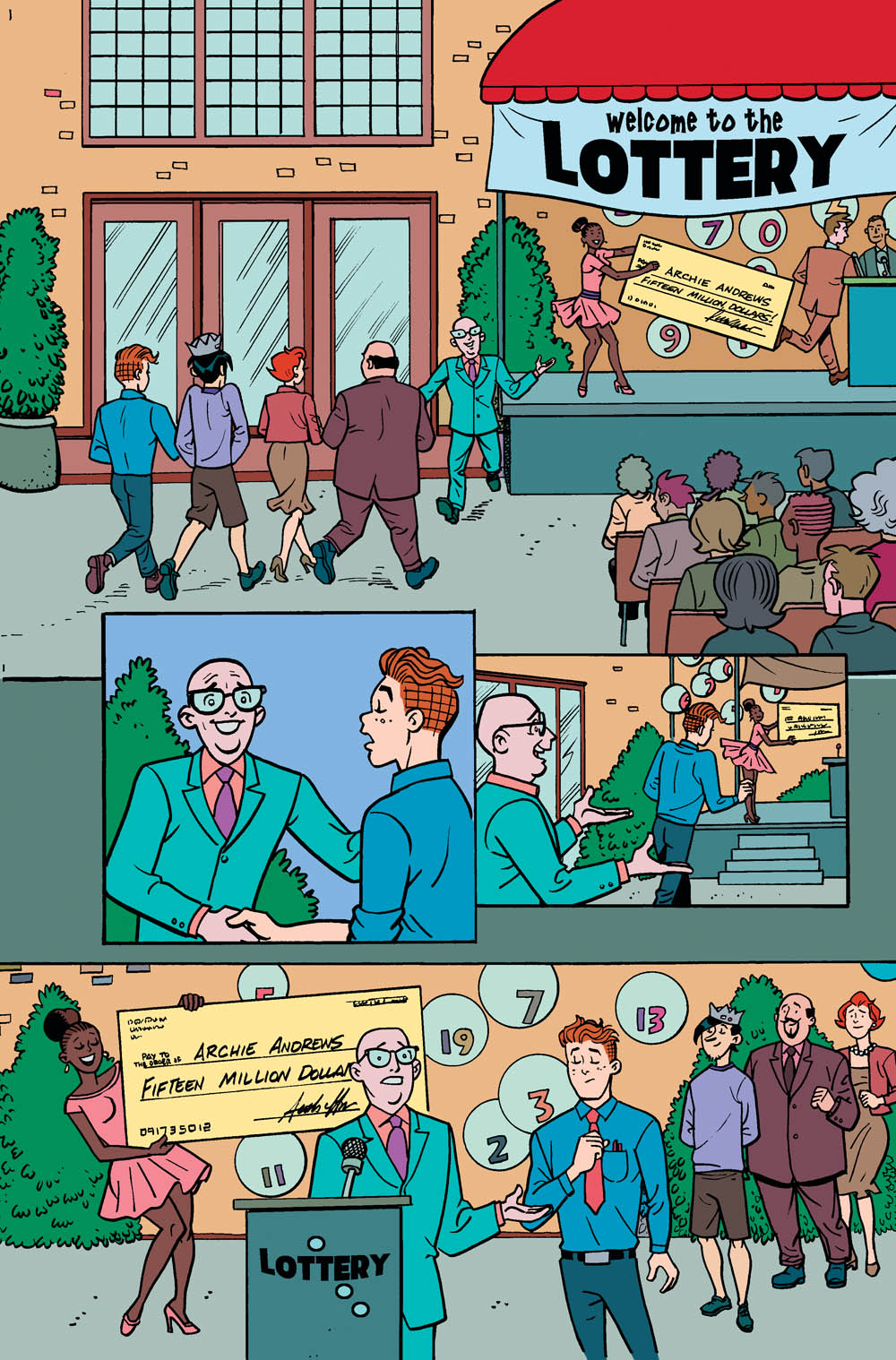 Classic-style Archie makes his return in this ALL-NEW, ALL-AGES comic! Now that Archie’s won the lottery, how will his life change? ALSO: Something’s wrong with Reggie. He’s being nice to EVERYBODY…